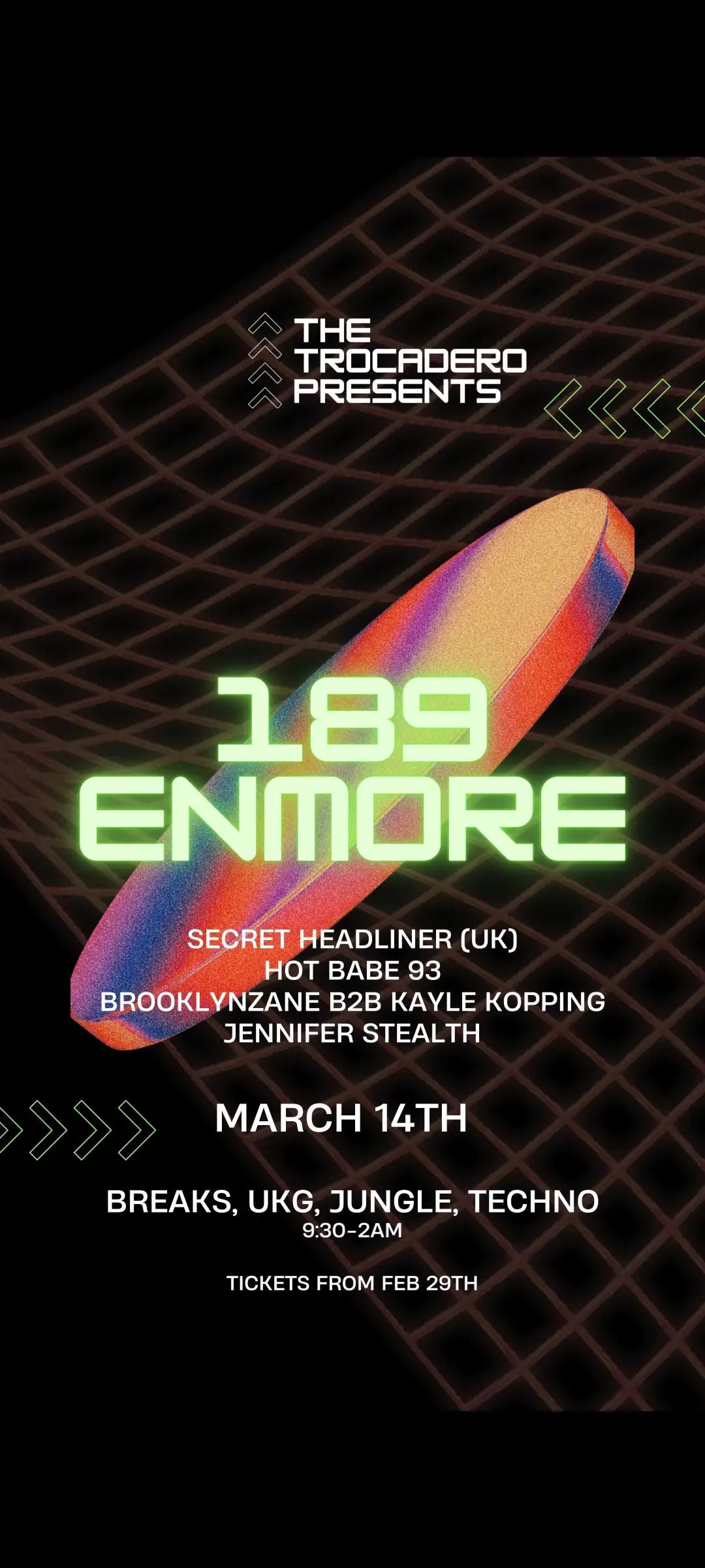 189 Enmore club début featuring a secret headliner from the UK. On the 14th we will be bringing you an eclectic mix of Breaks, UKG, Jungle and Techno with local and international artists all making their debut with 189ENMORE. Doors open from 9:30 pm. 189 Enmore adheres to a strict no dickhead policy, look after your mates and all of our wonderful staff. The Trocadero Room is fully licensed. THIS IS NOT A BYO EVENT!