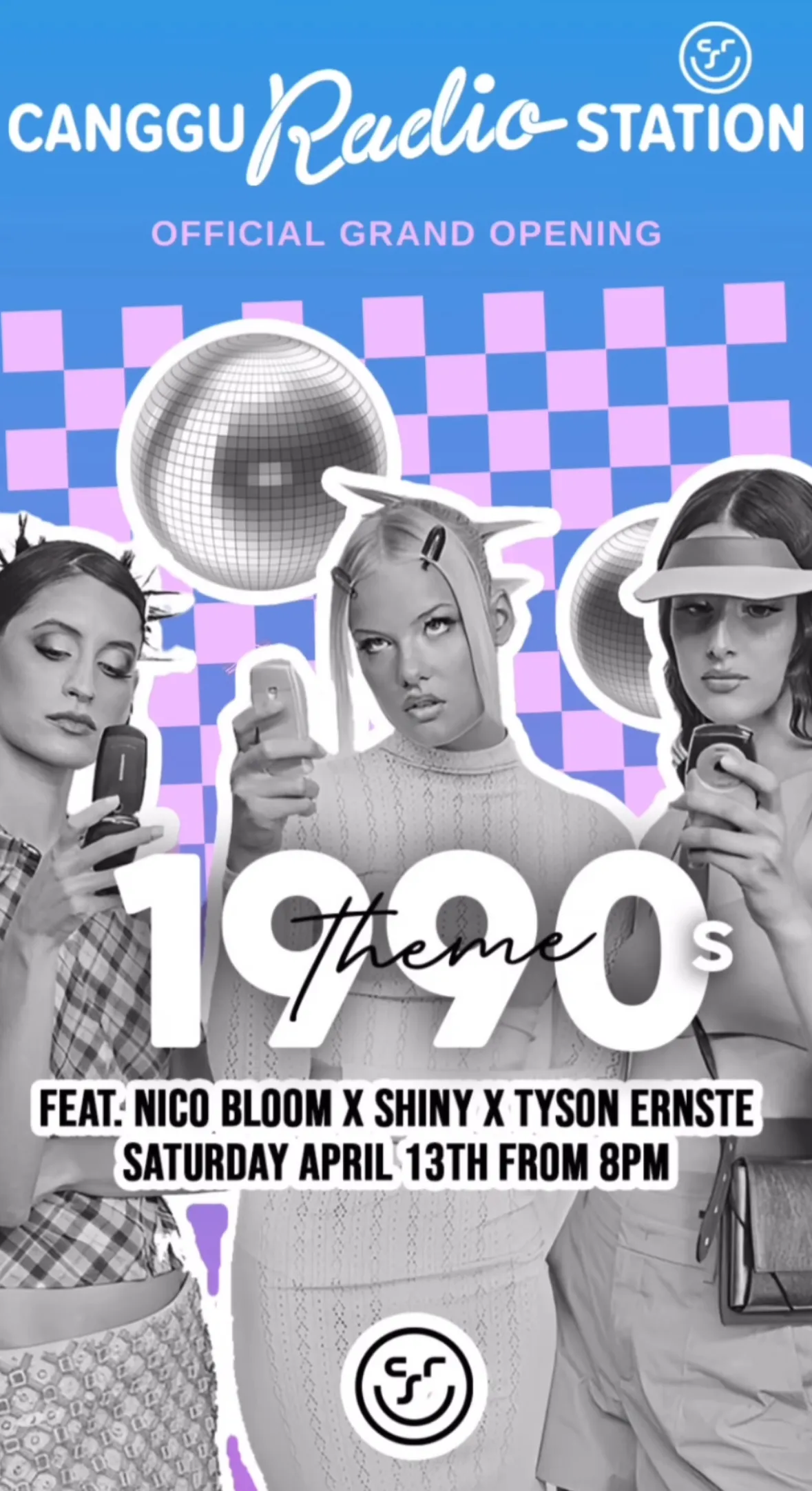 Join us every Thursday for the official grand opening of Canggu Radio Station! Get ready to groove to the beats spun by Nico Bloom, Shiny, and Tyson Ernste starting from 8 PM. It's going to be an electrifying night filled with great music and fantastic vibes. Don't miss out on the fun as we celebrate the launch of Canggu Radio Station in style!