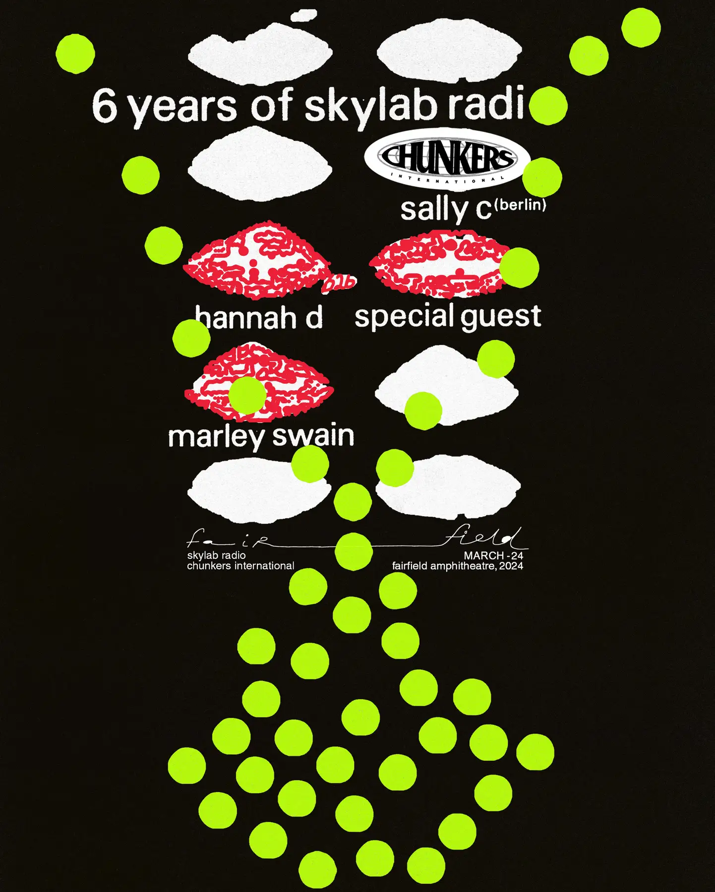 BIG SALDO'S CHUNKERS March 24 Fairfield Amphitheatre Skylab Radio is celebrating 6 years of broadcasting with a day party at the Fairfield Amphitheatre in collaboration with our dear pal Sally C (Big Saldo's Chunkers). There’s a time to recline your mind, and there’s a time to play it LOUDER, and what better to celebrate more than half a decade of community than by playing some absolute stonkers in the open air.