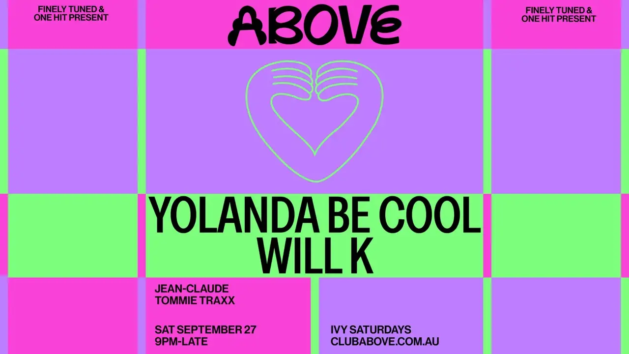 We're in for a double headline as Yolanda Be Cool and Will K take command of the Above dance floor on Saturday, September 27. Support: Tommie Traxx and Jean-Claude Above: Eora/Sydney's Saturday night dance destination.