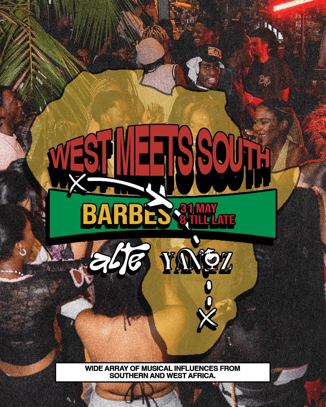 The contemporary new wave of alternative, genre-bending, and creative afro-fusion music is coming to Perth for the “WEST MEETS SOUTH” a collaboration between alté and yanoz.a wide array of musical influences from southern and west africa.we have handpicked some of best sound selectors in town to blend these sounds