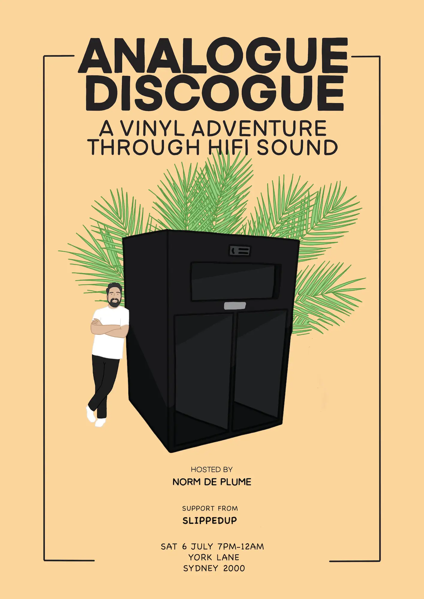 After a year long hiatus, Norm De Plume (Delusions Of Grandeur, UK) brings his much loved Analogue Discogue party back to life. Reintroducing things in a gentle and easy way the return comes in the form of an intimate dance at York Lane: The dainty European styled cafe-bar, behind Wynyard station that ooses charisma and unpretentious charm. It's no wonder it's one of Sydney's best kept secrets. Norm will install his beautiful 1980s Tannoy sound system, and all-vinyl booth. Dual-concentric drivers anyone? "What you get when you come to Analogue Discogue is an all-analogue, hifi sound experience. There are no digital components in the audio chain at all and I have always tried to adhere to the David Mancuso principal where less is always more. We feed direct from a Condesa discrete circuit mixer to audiophile power amps, to speakers. What you get is a very dynamic, open and pure sound." The excellent sound is only half the story though. AD has always been a kaleidoscope into the deep house producer's extensive record collection. If you come early and stay all night (which we highly recommend) you could hear everything from Bluenote to Bossa, Reggae to Rock Steady, Boogie to Disco , Jazz-Funk to Fusion, Chicago House to Deep Techno and much more. Joining Norm in the booth and on support duties will be SLIPPEDUP, the young-gun House DJ & fledgling producer from Eora, who's played around and about at Stanley's, 7th Day Brewery, Housemates (Tokyo Sing Song), Attic (Cafe Del Mar) etc! In a city where the vinyl-bar seems to be on the rise , (but the vibes can be hit and miss), do yourself a favour and come and experience the real thing. (Norm's been pushing out all-vinyl selections through hifi sound in the harbour city since 2017.)