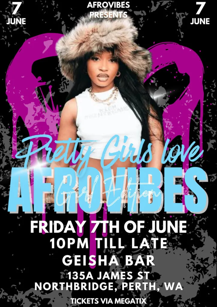 🔥𝐀𝐅𝐑𝐎𝐕𝐈𝐁𝐄𝐒🔥 — — — — — — — — — — — — — — — — — — PRETTY GIRLS LOVE AFROVIBES ❤️ Join us as we showcase Perth’s best Female Sound Selectors at the most elite Venue in the 6K! Dress code applies: ⟡ No Singlets ⟡ Fly Kits ⟡ No Fightwear ⟡ No Gymwear ⟡ No Hoodies ⟡ No Puffers A NIGHT TO REMEBER! Doors: 10pm Stay connected with us for updates, sneak peeks and vibes! 📷 Instagram: @geisha_bar_perth 🍹 Thirsty for Cocktails? 🍸 Enjoy $12 cocktails until midnight! 🎂 Celebrating Your Birthday? Get in touch for some birthday love ❤️🎉 Feeling boujee? Book a VIP Booth or Package for that extra special touch! 🎁 🌈 Inclusivity Matters 🌈 Geisha Bar acknowledges the Whadjuk Noongar people as the Traditional custodians of the land. We’re a safe and inclusive space for all identities, with zero tolerance for hatred or bigotry. Let’s dance, celebrate, and create memories together! 🌟🌏 Don’t forget to spread the word and invite your friends 👯♀️See you on the dance floor! 🎶🔥