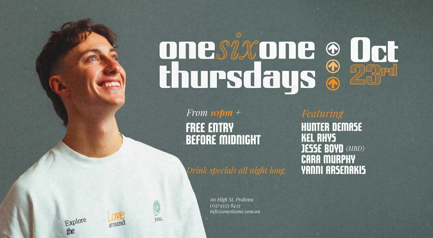 Welcoming HUNTER DEMASE. Fresh from a year touring Bali & overseas, and with a nice string of original releases (that are right up our alley!)... this is a showcase we're excited to present. Supports from Kel Rhys, Cara Murphy & Yanni... plus we also celebrate Jesse Boyd's Birthday! ━ ━ ━ ━ ━ ━ ━ Free Entry before midnight. $10 AGWA, FIREBALL, PB WHISKEY, WP SHOTS $15 COCKTAILS before 2am: $10 BASICS $12 VODKA REDBULLS