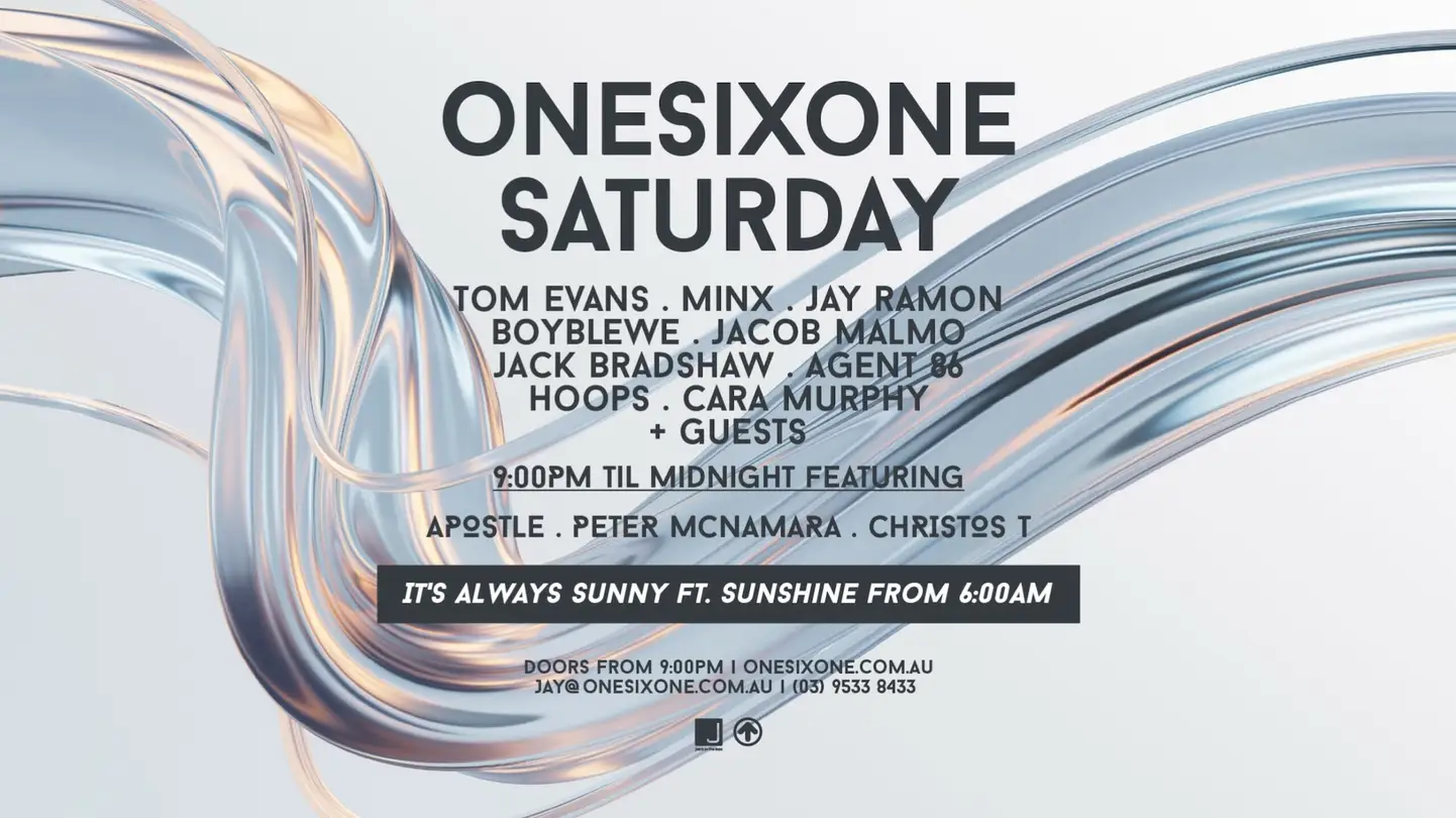 THE LONGEST RUNNING SATURDAY NIGHT IN MELBOURNE. 26 years of iconic DJ's, residents & guests keeping our infamous light-up dancefloor pumping well into Sunday morning. Serving up the best in House music that Melbourne has to offer. Doors open at 9PM & IT'S ALWAYS SUNNY takes over the booth every Sunday from 6AM to midday. BOOTH BOOKINGS AVAILABLE VIA OUR WEBSITE BELOW.