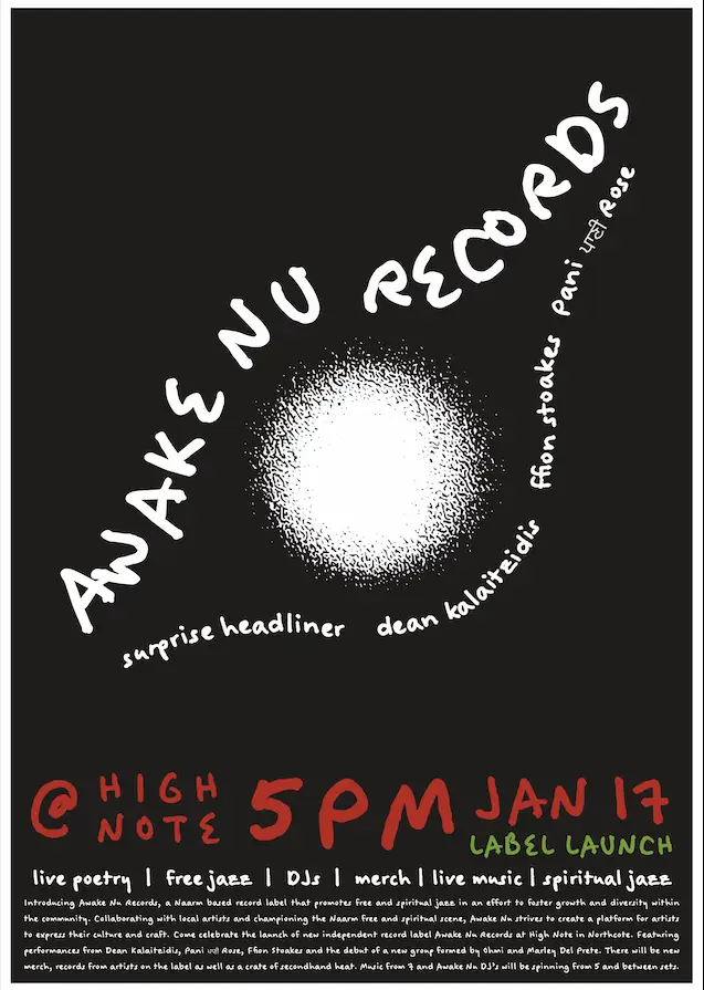 Come celebrate the launch of new independent record label Awake Nu Records at High Note in Northcote. Awake Nu is a Naarm based label that promotes free jazz and spiritual jazz in an effort to foster growth and diversity within. The launch will be featuring performances from Dean Kalaitzidis, Pani ਪਾਣੀ Rose, Ffion Stoakes and the debut of a new group formed by Ohmi and Marley Del Prete. There will be new merch, records from artists on the label, as well as a crate of secondhand heat. Awake Nu DJ’s will be spinning from 5pm, live music from 7pm onwards. Free RSVP