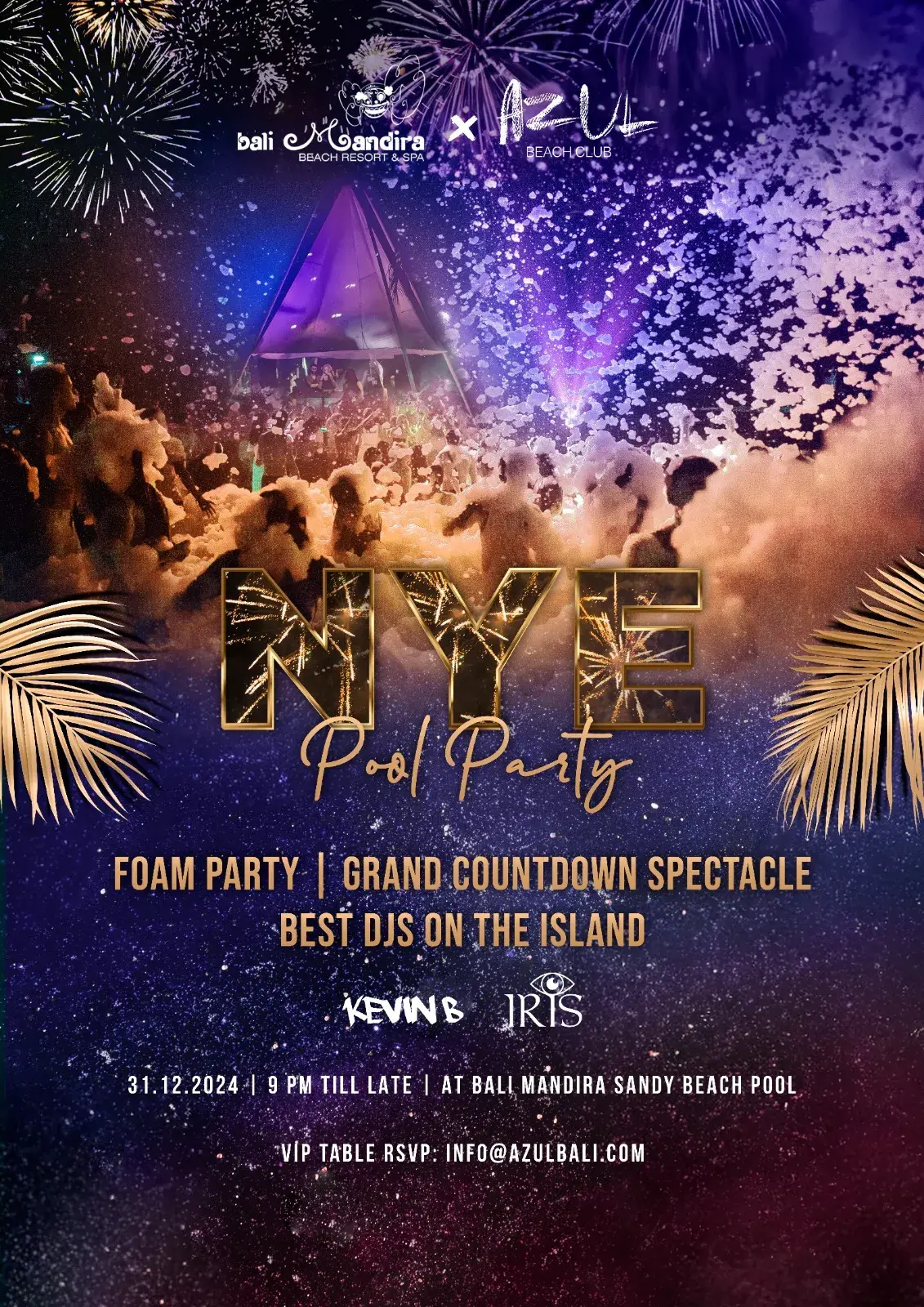 Get ready to ring in the New Year in style at Azul Beach Club Bali with an epic NYE Pool Party! Join us on 31st December 2024, starting from 9 PM until late, for a night packed with excitement, featuring a foam party and a spectacular grand countdown. Dance the night away with some of the best DJs on the island, including Kevin B and Iris, as they keep the vibes high and the beats going all night long. Don’t miss this unforgettable celebration—let’s welcome 2025 with a splash!