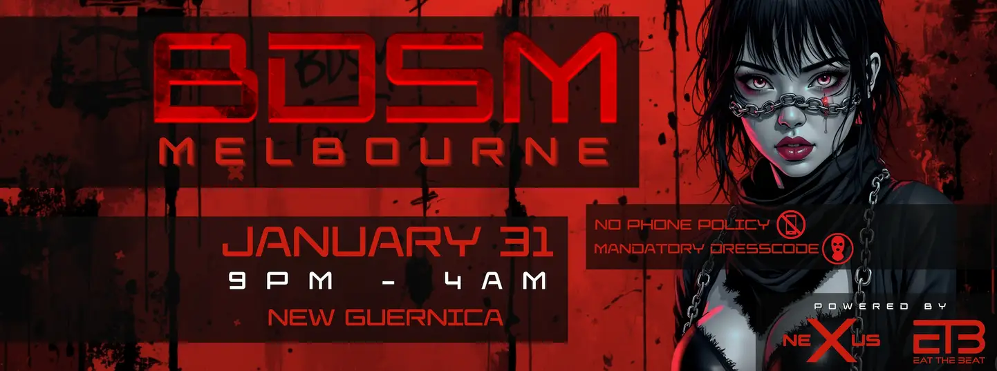 Melbourne, itโs time to step into the kinkiness. EAT THE BEAT is teaming up with NEXUS to bring ๐๐๐๐ to ๐๐๐ฐ ๐๐ฎ๐๐ซ๐ง๐ข๐๐ on ๐ ๐ซ๐ข๐๐๐ฒ, ๐๐๐ฌ๐ญ ๐จ๐ ๐๐๐ง๐ฎ๐๐ซ๐ฒ. Get ready for a ๐ฎ๐ง๐ข๐ช๐ฎ๐ ๐ซ๐๐ฏ๐ ๐๐ฑ๐ฉ๐๐ซ๐ข๐๐ง๐๐ of pounding beats, immersive artistry, and raw energy. What to Expect: โข ๐ ๐ข๐ง๐ญ๐๐ซ๐ง๐๐ญ๐ข๐จ๐ง๐๐ฅ ๐๐ซ๐ญ๐ข๐ฌ๐ญ๐ฌ bringing the best in Techno and Hard-Techno. โข ๐๐ ๐ฅ๐จ๐๐๐ฅ ๐ฅ๐๐ ๐๐ง๐๐ฌ on support. โข โ ๐ ๐ซ๐จ๐จ๐ฆ๐ฌ, to space all night from different vibes. โข โ ๐๐ก๐ข๐๐๐ซ๐ข ๐ฌ๐ก๐จ๐ฐ๐ฌ and ๐ฅ๐ข๐ฏ๐ ๐ฉ๐๐ซ๐๐จ๐ซ๐ฆ๐๐ง๐๐๐ฌ. Policies & Guidelines: โข ๐๐๐ง๐๐๐ญ๐จ๐ซ๐ฒ ๐๐ซ๐๐ฌ๐ฌ ๐๐จ๐๐: Express yourself through BDSM, fetish, or rave-inspired fashion. โข โ ๐๐จ ๐ฉ๐ก๐จ๐ง๐ ๐ฉ๐จ๐ฅ๐ข๐๐ฒ: Live in the momentโno distractions. Photos or Videos are prohibited. Let's create a ๐ฌ๐๐๐, ๐ข๐ง๐๐ฅ๐ฎ๐ฌ๐ข๐ฏ๐, ๐๐ง๐ ๐ฃ๐ฎ๐๐ ๐ฆ๐๐ง๐ญ-๐๐ซ๐๐ ๐๐ง๐ฏ๐ข๐ซ๐จ๐ง๐ฆ๐๐ง๐ญ for everyone. Letโs push boundaries to celebrate individuality together. Get your harness ready We are about to get ๐๐๐๐๐