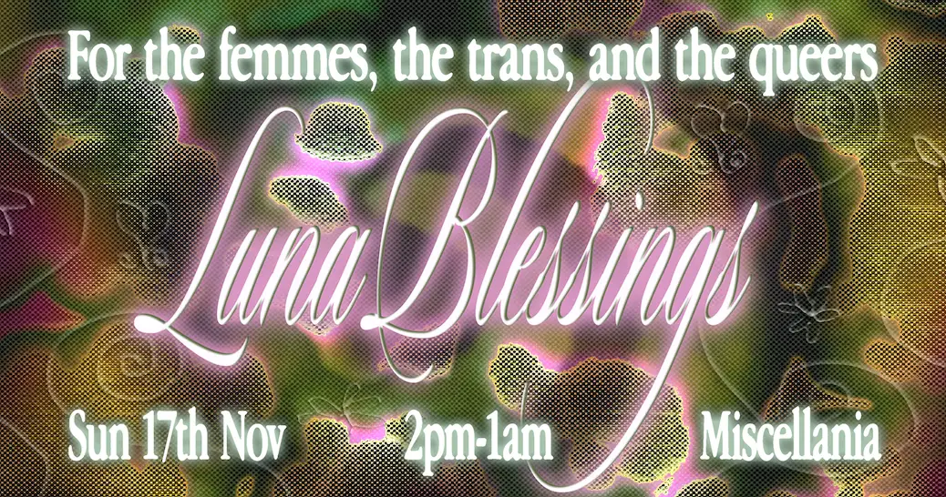LUNA returns to Miscellania to host our second spring outing for the year with a star-studded lineup of local and international sweethearts. Joining us for the first time is Radiant Records label head ๐๐๐ป๐ธ๐ท ๐จ๐ฎ๐ช๐ฝ๐ฎ๐ผ, known for his playful productions and transformative DJ sets โ inducing waves of euphoria and sheens of sweat from those on the dancefloor. Weโre thrilled to host BAD (Black Artist Database) co-founder ๐๐๐๐ข, who dedicates her time to elevating black electronic artists through this platform. Her DJ sets are rhythmic and percussive, powerful and emotive incarnations of her inner world. A long-standing LUNA favourite, we welcome ๐๐ ๐๐ฒ๐ช๐ถ๐ฑ back to take us through her infectious, progressive goodness. Lastly, vibrant forces of the Naarmโs music scene, ๐๐ช๐ป๐ฌ๐ ๐๐พ๐ผ๐ฝ๐ฒ๐ฌ๐ฎ and ๐๐ต๐ผ๐ฒ๐ฎ will be guiding us through a sun-filled afternoon on the Miscellania rooftop. As part of the Misc Sunday Series, there will be drink specials from 2 - 4pm and food on the rooftop from 4 - 8pm! We canโt wait to dance with you in just a few short weeks. LUNA xx โค(*ฯ*)โค Sunday 17th of November 2pm-1am Miscellania Poster by Gabriella Brown @soft_edges -....--....--....- LUNA Blessings is a FLINTA + Queer party. Please be mindful if youโre attending as an alley to allow those who this is made for to take up the space they need. There is a strict zero-tolerance policy towards racism, homophobia, transphobia, sexism, ableism or harassment of any kind. This event is being held on Stolen Land. We acknowledge the Wurundjeri Woi Wurrung people, on whose land this event will take place. We pay our respects to the Elders past, present and emerging and recognise that sovereignty has never been ceded. Free entry for First Nations people and Trans Women of Colour, just email lunablessings.music@gmail.com before the event. Miscellania is not wheelchair accessible. It can only be accessed via four flights of stairs. The rooftop bar is a further two flights of stairs up from the main venue room. Smoke machines will be used. There will be no strobe lights. Full accessibility document for Miscellania can be found via ticket link.