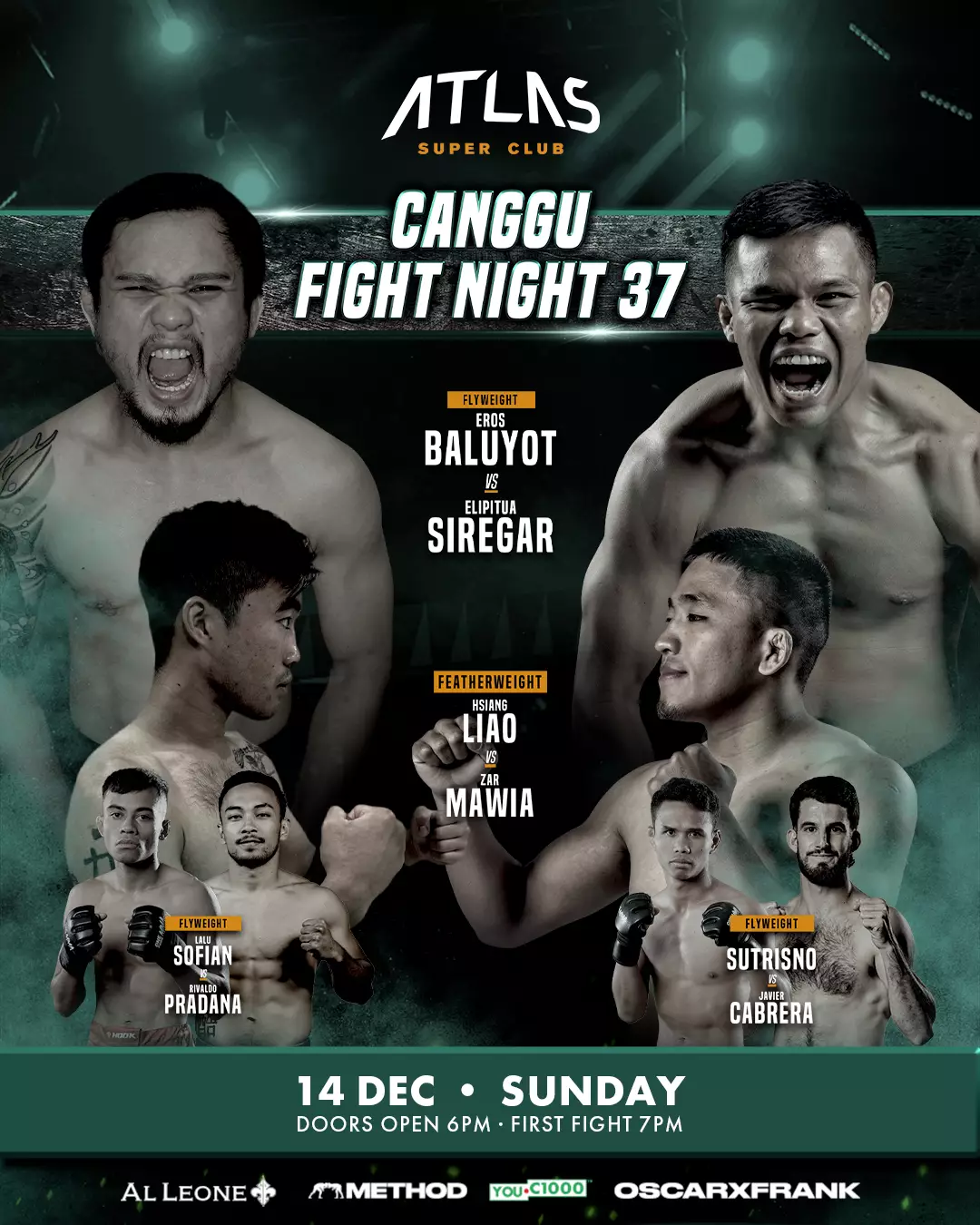 ATLAS SUPER CLUB Get ready for a night of intense battles at Canggu Fight Night 37, held at Atlas Super Club. Prepare for a night full of adrenaline and excitement on Sunday, 14 December. Doors open at 6 PM, and the first fight kicks off at 7 PM. Grab your tickets today and don’t miss the opportunity to witness epic showdowns in the cage!