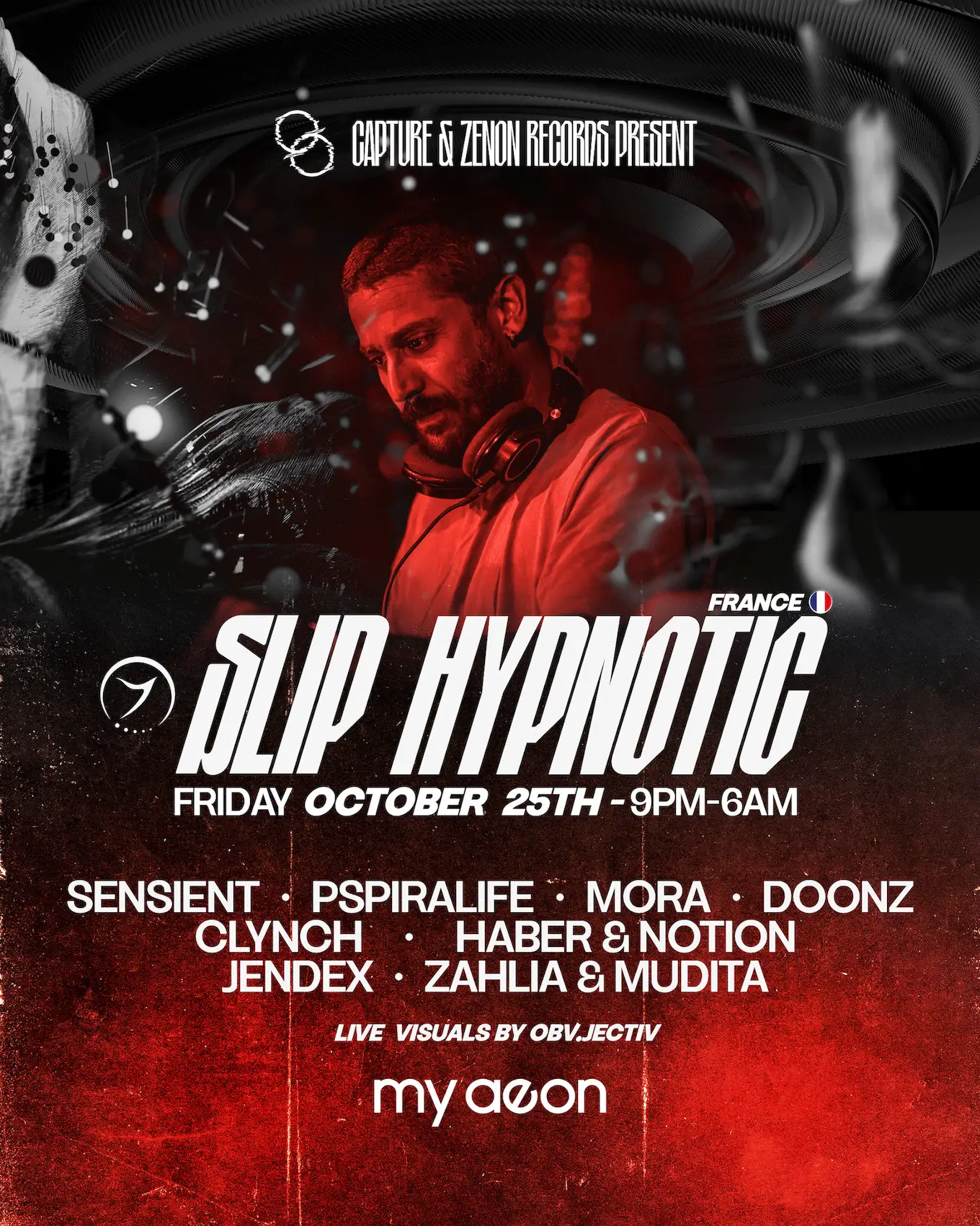 Capture and Zenon Records return for their second collaborative showcase, presenting French talent Slip Hypnotic for his Australian Tour. Zenon heavyweight Pspiralife will be making a special apperance for this club showcase alongside Sensient, Mora and Doonz. With some local legends representing the Capture crew.