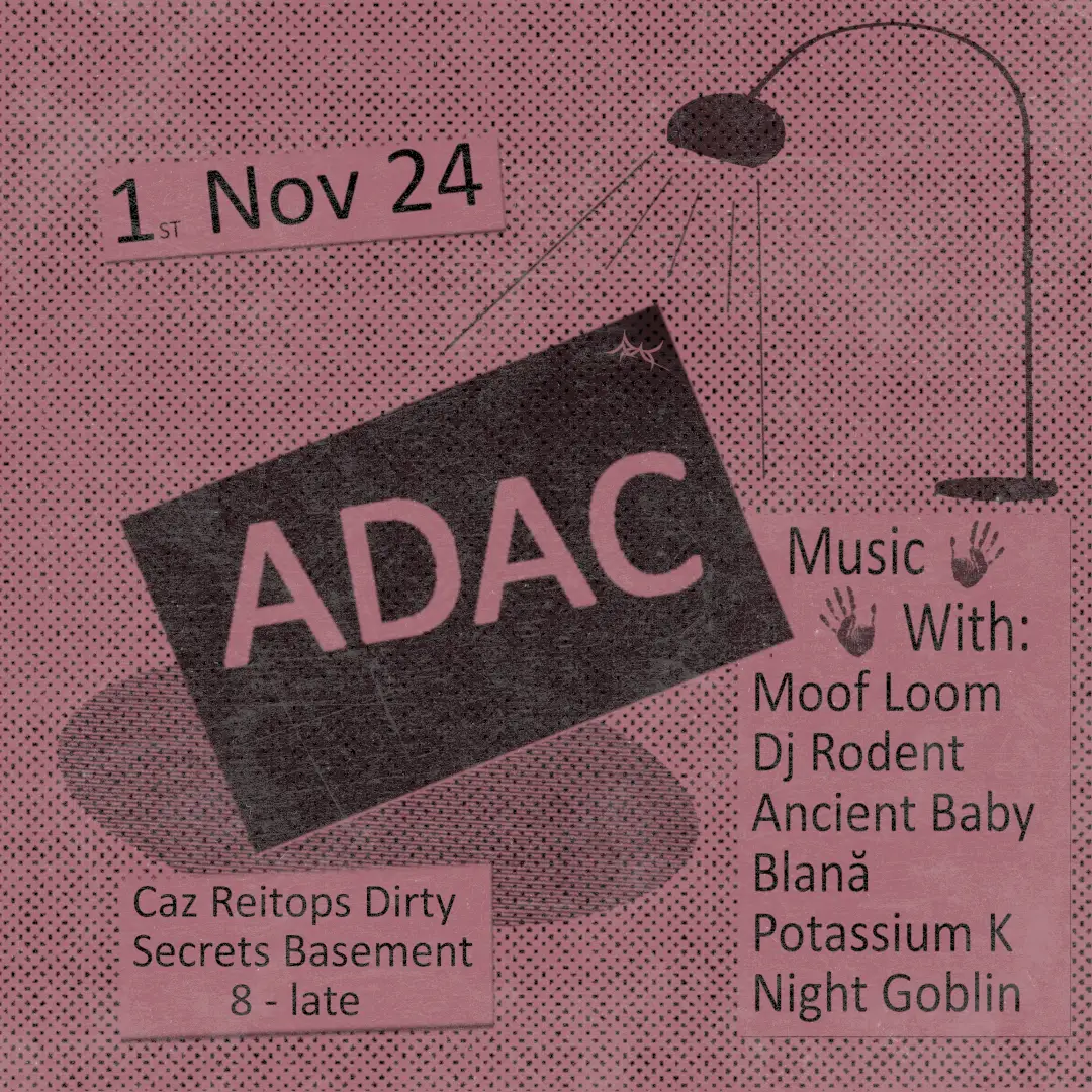 For November, ADAC invites guests Blană and Potassium K to take the lead for a night of dance in the basement. -- Regular attendee or a new guest, ADAC is an inclusive and safe space where all can thrive without fear of harm or harassment. Should you witness or experience any ill behavior, please notify our event organizers or Caz Reitops staff. This event takes place on the land of the Wurundjeri People of the Kulin Nation. We acknowledge and pay our respect to elders past, present and emerging. Sovereignty was never ceded. This always was and always will be Aboriginal land. Unfortunately this event is not wheel chair accessible. Flyer by @_Uwan111