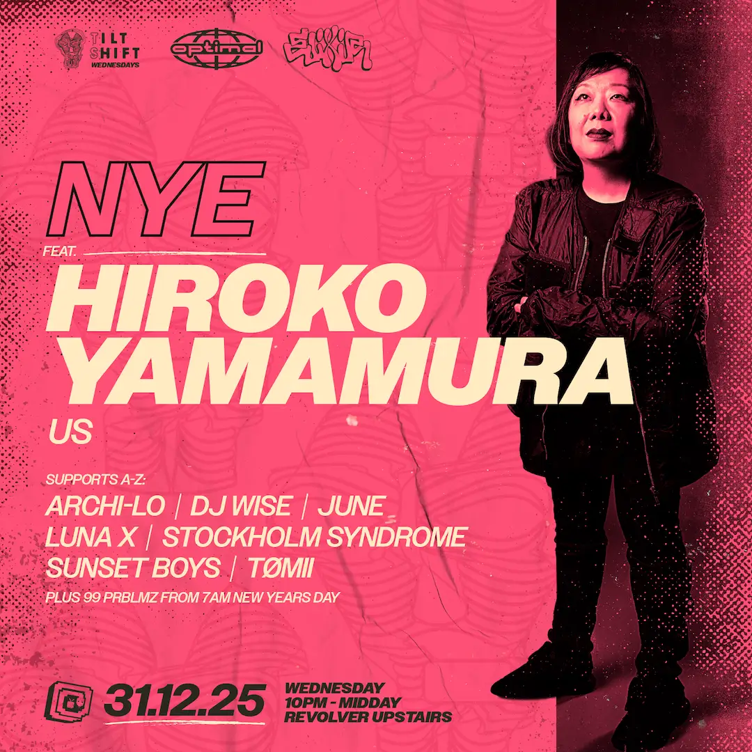 NYE ft. Hiroko Yamamura (US) — Tilt Shift, Optimal & Elixir Wednesday 31st December, 10:00PM - 12:00PM, Revolver Upstairs ————————————————————— Hiroko is a classic Chicago ride-or-die DJ and producer, deeply influenced by the legacy of The Warehouse, technology, and straight-up techno. It’s no surprise she was named one of Chicago’s Top 10 DJs by XLR8R Magazine. Technology and exploration sit at the core of Hiroko’s creative identity. Equally captivated by the beat and the machines that generate it, her sound pays homage to every circuit, resistor, patch cord, and application that brings voice and inspiration to her work. Her gothic and industrial roots are evident throughout her music, balanced by a punk rock DIY ethos. Drawing inspiration from classic science fiction and dark anime, Hiroko’s studio can often be mistaken for a booth at a comic convention. Currently calling labels such as Trax Records, Impact Mechanics, Slap Jaxx, and Klectik home, Hiroko has recently returned from a long hiatus with a renewed and focused techno vision. While her previous projects—Bio-Booster and her work as a member of Monologic—remain an important part of her history, they now take a back seat to her present-day sound. A Midwest rave staple, Hiroko has toured globally, spreading the sound of Chicago with performances at the legendary Movement Detroit Festival, as well as regular appearances in Berlin and Ibiza. She currently holds residencies at iconic Chicago clubs including Spybar and Soundbar. ————————————————————— SUPPORT A-Z: archi-Lo DJ Wise June Luna X Stockholm Syndrome Sunset Boys TØMII Plus 99 Prblmz from 7am New Years Day. ————————————————————— Revolver Upstairs respectfully acknowledges the Boon Wurrung People of the Kulin Nation, their elders, past and present, who are the Traditional custodians of he land never ceded. We also acknowledge the Traditional Owners of lands and waters across Australia, their elders, ancestors, and recognise their continuing connection to, and aspirations for Country. Revolver Upstairs prides itself on being an inclusive space. Please visit our website for more info.