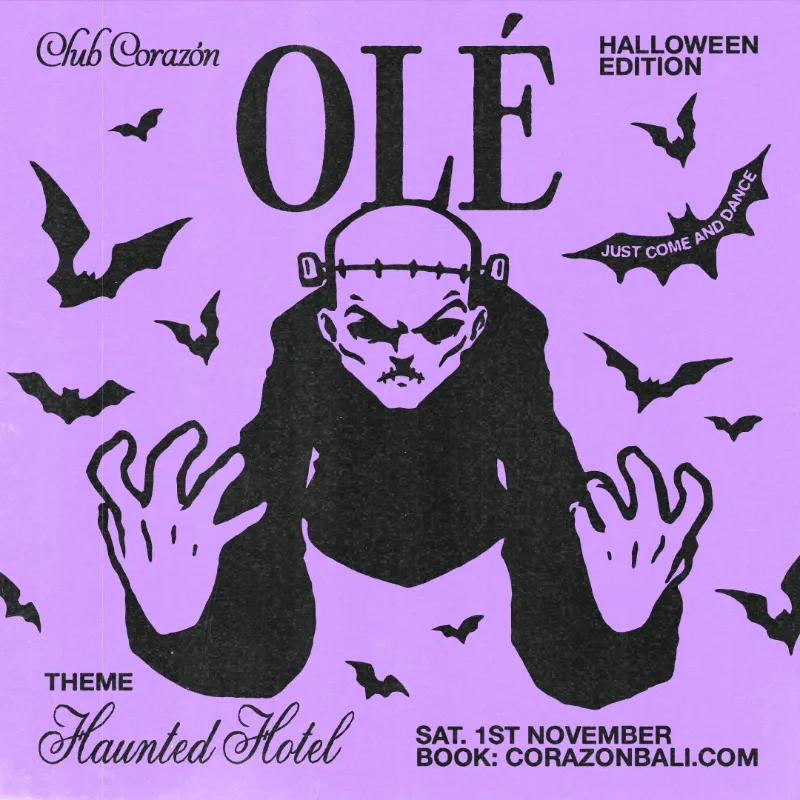 🎃 CLUB CORAZON PRESENTS: HAUNTED HALLOWEEN WEEKEND FT. OLÉ 👻 SATURDAY, 1ST NOVEMBER. This Halloween, Club Corazon transforms into the ultimate haunted playground for two nights of chaos, costumes, and dance floor madness. Get ready for a weekend stacked with world-class music, spine-tingling production, and Uluwatu’s wildest crowd. Theme: Haunted Hotel. OLÉ brings the heat with a night dedicated to 2000’s hip-hop and reggaeton — think throwback anthems, infectious rhythms, and non-stop party vibes until sunrise. Kick off the night at Tacos Aqui Uluwatu for the official pre-party, then head straight to Club Corazon for the after-dark madness. Costumes are highly encouraged — the wilder, the better. 📅 1st November 2025 📍 Club Corazon, Uluwatu ⏰ 10PM til late :warning: Tickets are non-refundable for change of mind or accidental purchase