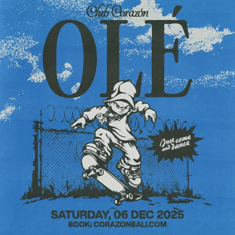 CLUB CORAZON PRESENTS OLÉ Saturday 6th December. If you've been to the previous OLÉ parties, than you know what's up! Born from the roots of Spanish culture. They craft an atmosphere where the energy of the crowd takes centre stage, transcending the need for big names or rigid expectations. Olé plays irresistible rhythms of reggaeton, nostalgic pulse of early 2000s club anthem, electrifying grooves of house and acid techno. Each moment is designed to keep the dance floor alive. Everyone is invited. Just come and dance! GUESTLIST WILL NEED TO ARRIVE BEFORE 11:00PM. TABLE BOOKINGS: +62 813-3090-7822 📅 6th December 2025 📍 Club Corazon, Uluwatu ⏰ 10PM til late :warning: Tickets are non-refundable for change of mind or accidental purchase