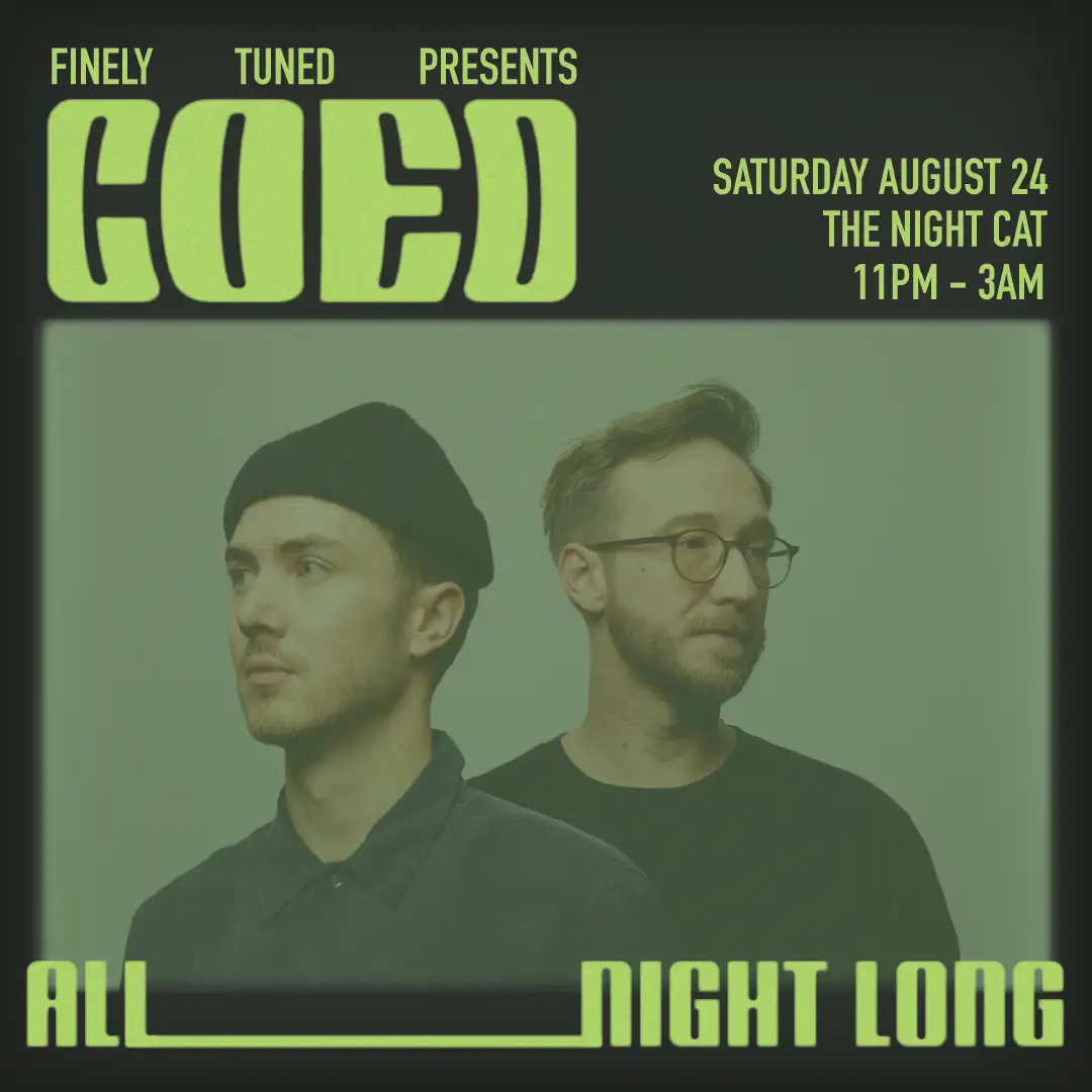 We're going all night long with German duo COEO at Naarm's Nightcat on August 24. The eclectic duo—aka Florian Vietz and Andreas Hopfl—are responsible for some of the biggest feel-good anthems from the past decade, including ‘Like It Is’, ‘Honey’ and ‘Back in the Days’. From house to disco to nostalgia, COEO craft tracks filled with funky basslines, soulful vocals and earworm hooks that will have you dancing all night long. Join us for four hours of COEO power on August 24. Tickets on sale now.
