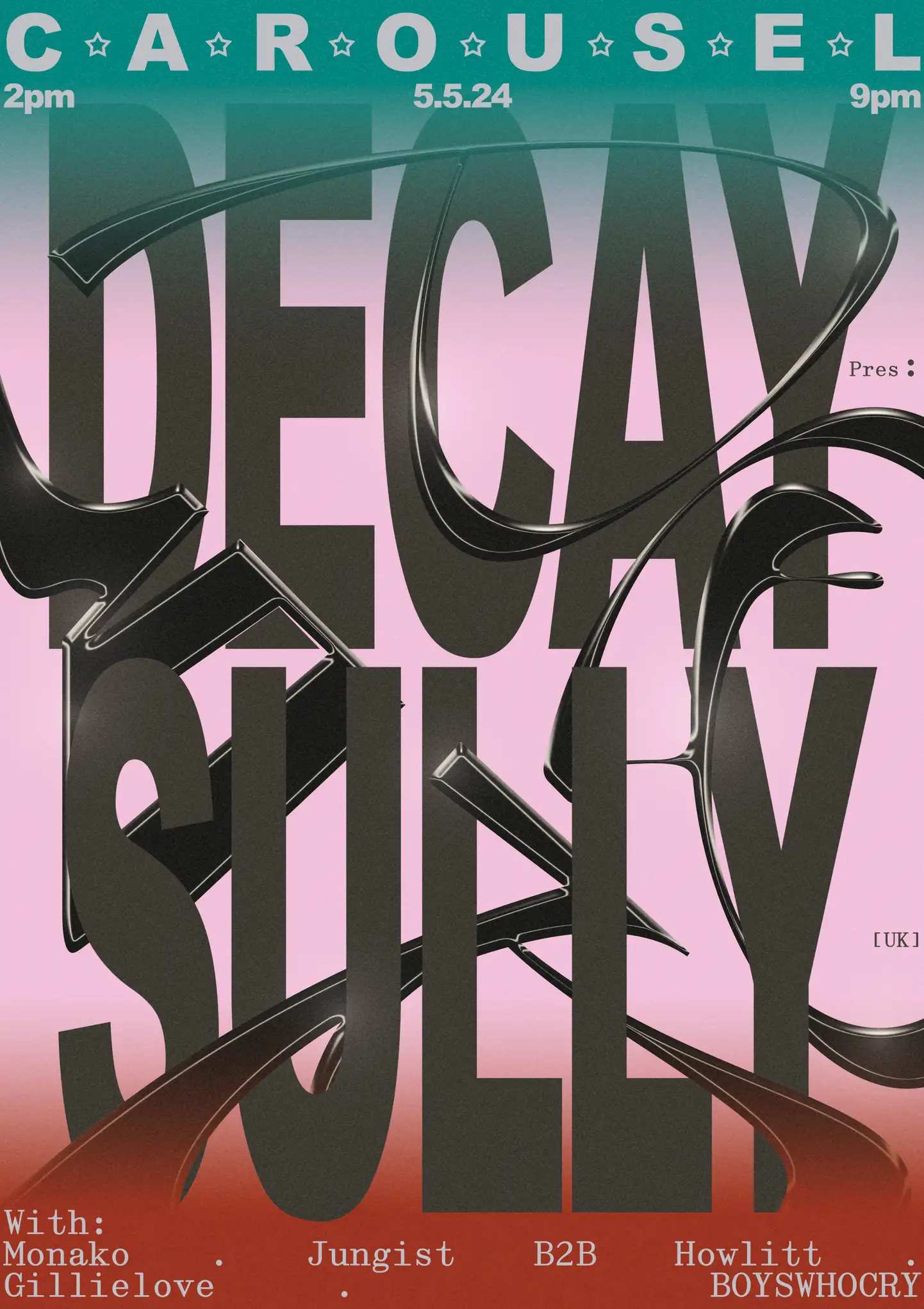Decay Audio are proud to present legendary Jungle and Drum and Bass producer, Sully. Sully has become somewhat of a cult figure in the jungle world with his output being in high demand. His work is unmistakable. It’s always true to it’s origins while simultaneously adding new takes and juxtapositions in palette and composition. A true artist that excels in his field. On supporting duties are Gillielove, Boys Who Cry (Izzy G + James The Ripper + Stefcon), Monako and debut B2B with Jungist and Howlitt. We acknowledge that this event takes place on stolen Aboriginal land and wish to offer free entry to First Nations attendees.