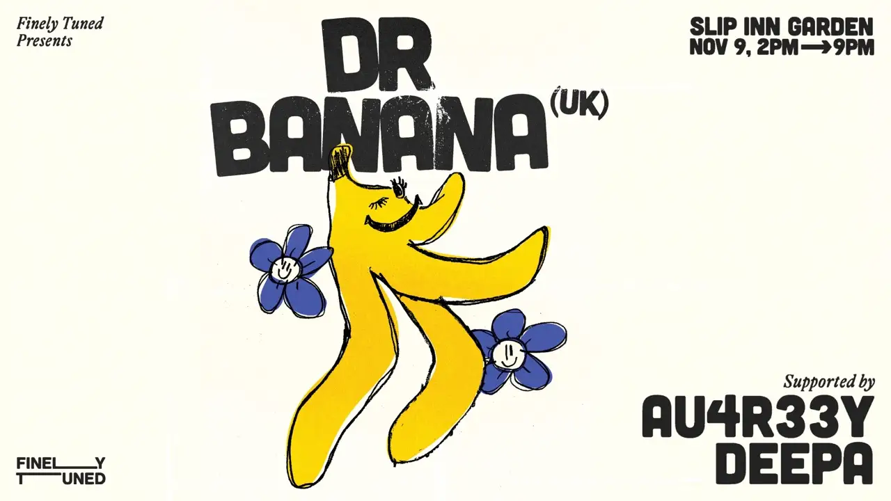 Saturday, November 9, sees Dr Banana bring his rabbit-hole record bag to Eora/Sydney for an open-air day party at the Slip Inn Garden. What can we say about the good Doctor? A record connoisseur in the truest sense, this specialist selector straddles the worlds of underground fashion and music with a playful sense of style and a wink in his eye. Whatever the weather, wherever the crowd; Dr. B first cut his name playing dusty and forgotten golden-era UKG but is just as renowned for throwing out meaty chunks of electro, techno and straight shellers at some of the world’s best parties. Counting fellow highly regarded selectors (with equally deep bags) such as Bradley Zero and Interplanetary Criminal as peers and back-to-back partners, the Doc’s prescription is just what you need: an endless supply of bumpin’, grindin’, groovin’ and versatile trotters guaranteed to put a smile on your dial. Let’s do it outdoors together on November 9. Joining Dr. Banana for this hotly-anticipated event are local legends Au4r33y and Deepa, wrapped and ready to cook. A proper day session that you won’t want to miss; appointments are limited - book now to avoid disappointment.