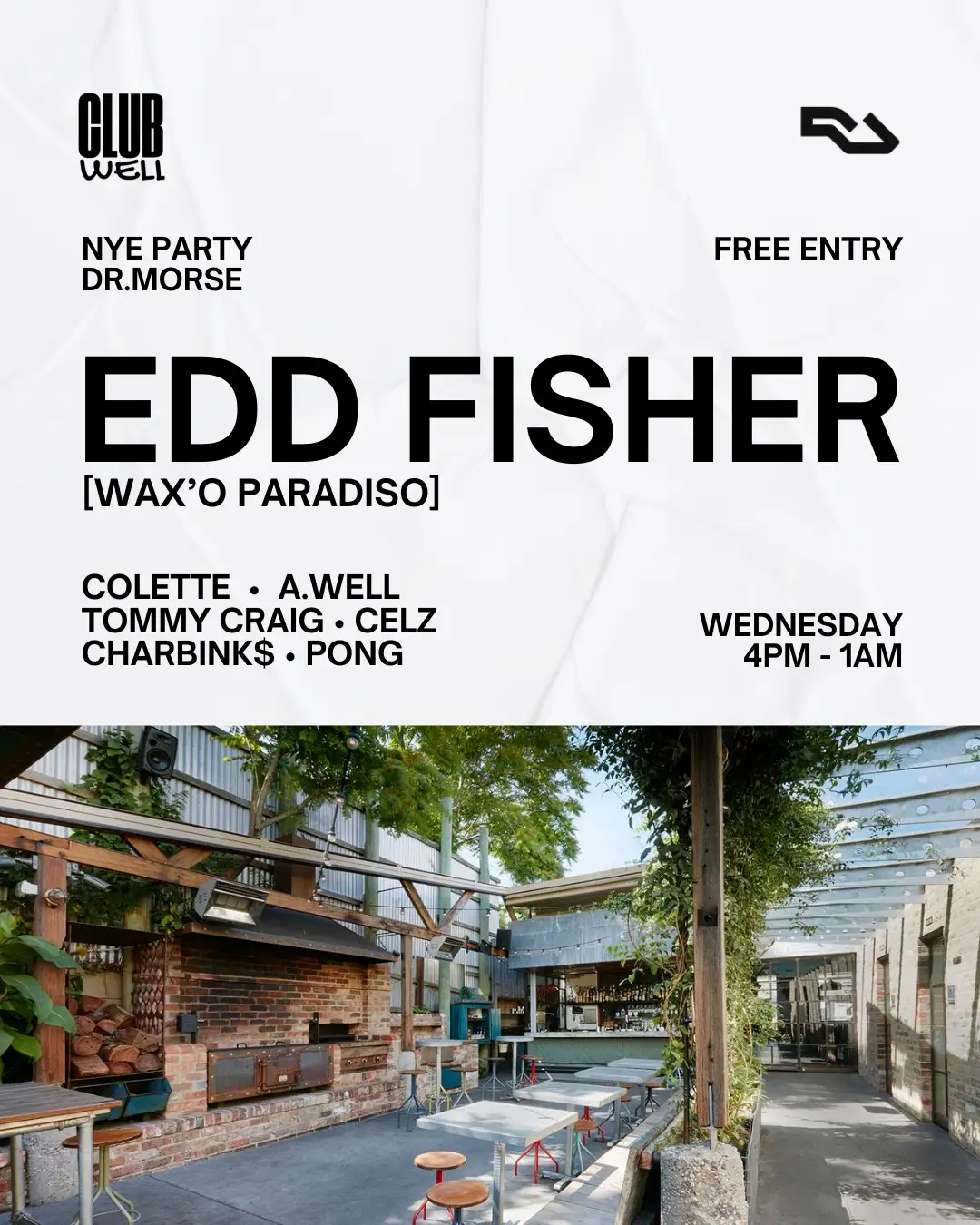 Edd Fisher - no stranger to the dance scene and festival stages — he’s just rocked Strawberry Fields and a bunch of other epic gigs. Now he’s bringing that sunshine energy straight to Club Well’s NYE party at Dr.Morse. Expect big beats, good vibes, and plenty of reasons to dance like nobody’s watching.