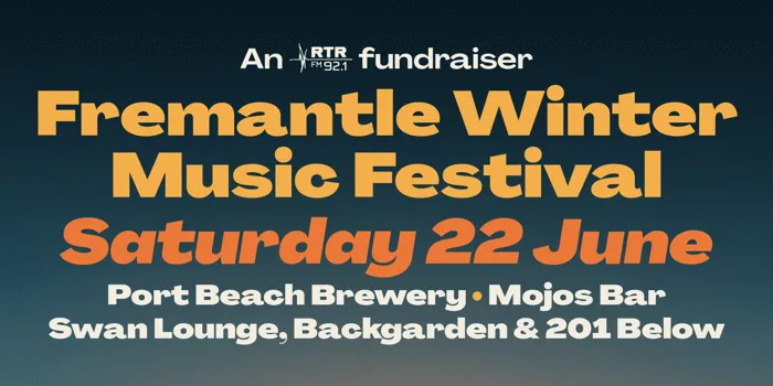 RTRFM’S FREMANTLE WINTER MUSIC FESTIVAL BRINGS THE WARMTH THIS JUNE RTRFM is set for its annual takeover of North Freo on Saturday 22 June 2024, with the station’s Fremantle Winter Music Festival set to bring some heat to the cold weather. The Fremantle Winter Music Festival features 30 acts across five stages at Port Beach Brewery, the Swan Lounge, 201 Below, Swan Backgarden and Mojos on Saturday 24 June from 7pm till late. At the Swan Lounge, catch an eclectic mix of genres to get you dancing, including Bad Boogey, Cabra Roots, Jeeper, Red’s Tribe and Rochelle. Step into the Swan Backgarden, through the basement, for some acoustic magic; imagine you and your mates are in your own garden with tunes from Darcie Haven, Romy B, Sam Coombes and Sleepy Soph. And in the newly renovated 201 Below (Swan Basement) join some of the state's newest and party centric DJs with sets from Alice Andro, Animatedharpy42, DJ I Miss My Cat, Musu and Wetpuddlss. Head to the two stages of the now winter-proof Port Beach Brewery for the sounds of Alter Boy, Have a Good Day, Homebrand and Luci inside. And on the outside stage catch Coco Elise, Ghost Care, Ricky Neil Jnr, Ryley (Duo) and Sunsick. Over at Mojos we go a bit rock and roll with sets from Bravo Inferno, Loveshovel, Los Removalists, The Spunloves and Unicorn. Plus outside till 11pm and then inside to close out the night catch DJs from The Rounds, including Alana Joy, Cooper Cooper, Henny, Nicole Filev and Sacha Alexiou. Roll into North Fremantle for the Fremantle Winter Music Festival 2024, Saturday 22 June. Presale tickets to Fremantle Winter Music Festival are available now via rtrfm.com.au and Oztix. All ticket sales help to keep RTRFM on air and supporting local, independent music and arts. This event takes place on Whadjuk Noongar Boodjar and we pay our respects to Noongar elders past, present and emerging. WHEN: Saturday 22 June from 7pm - Late. WHERE: Mojos Bar, Port Beach Brewery, Swan Lounge, 201 Below and Swan Backgarden. WHO: Alter Boy, Alice Andro, Animatedharpy42, Bad Boogey, Bravo Inferno, Cabra Roots, Coco Elise, Darcie Haven, DJ I Miss My Cat, Ghost Care, Have A Good Day, Homebrand, Jeeper, Los Removalists, Loveshovel, Luci, Musu, Red’s Tribe, Ricky Neil Jnr, Rochelle, Ryley (Duo), Sam Coombes, Sleepy Soph, Sunsick, Romy B, The Rounds DJs, The Spunloves, Unicorn, Wetpuddles. TICKETS: $25 for Subscribers and $30 for General Admission from rtrfm.com.au and Oztix. This is a strictly 18+ event. No under 18s allowed under any circumstances.
