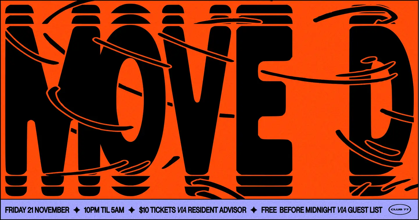 Club 77: Move D, Jamie Palmer - ✦ Friday 21st November ✦ Move D, Jamie Palmer ✦ 10:00pm - 5:00am ✦ Free entry on guest list before 12am ✦ $10 Tickets via Resident Advisor ✦ $25.00 After - This event takes place on stolen land. Free entry for all First Nations people and is also offered for those who require it. DM or email contact@club77.com.au for access. Club 77 is an ally to the LGBTQI+ community and a safe space for freedom and expression. We have zero tolerance for transphobia, homophobia and racism. - Dance | Explore | Connect | Manifest Celebrating 28 years as a hub for local club culture and a safe space for freedom and expression.