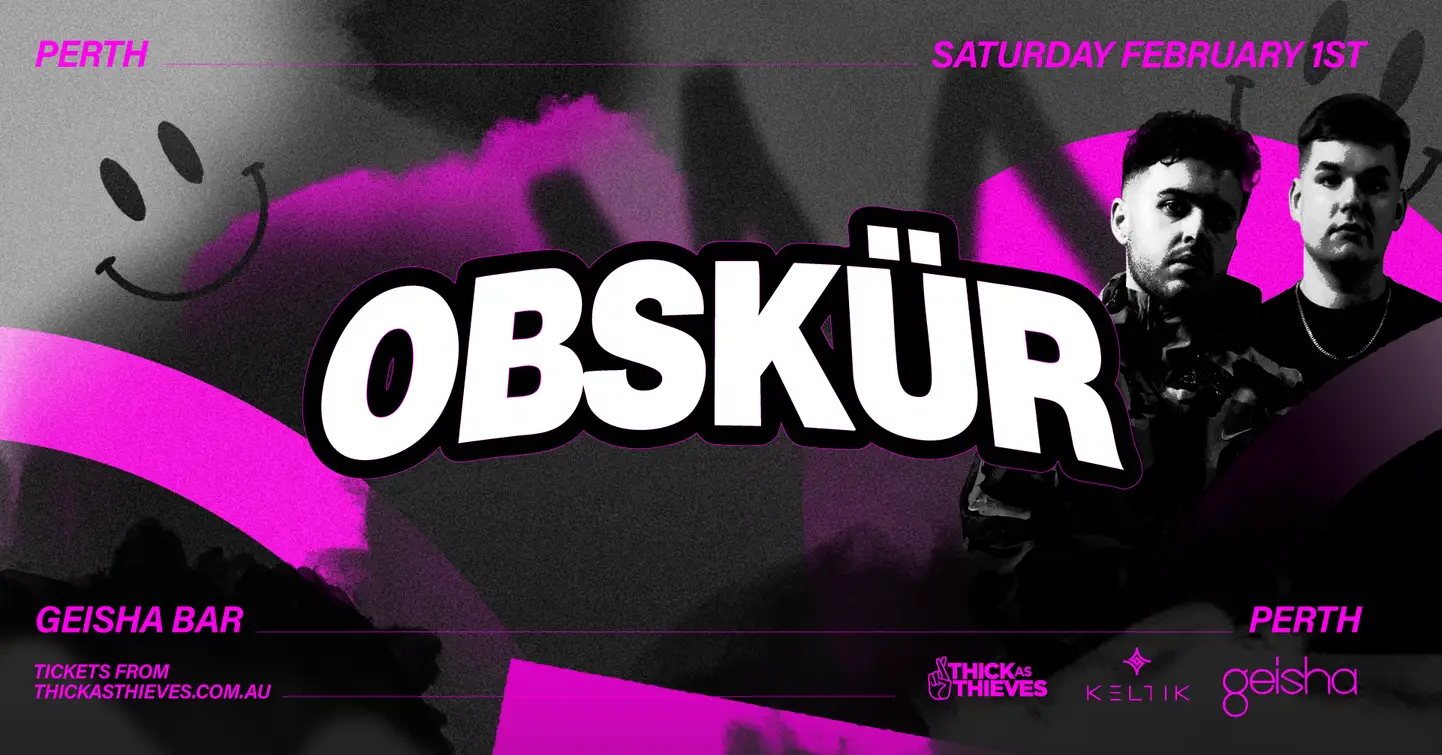 Hailing from Dublin and having earned recognition for their use of hard hitting 909’s, slick Hip-Hop samples & raw elements, Obskür return to Perth after a sold out 2023 Australian tour, back for another round!�� The dynamic duo join us as they take over Geisha Bar Saturday the 1st of February 2025. Presented by [+++] & Thick as Thieves & Keltik