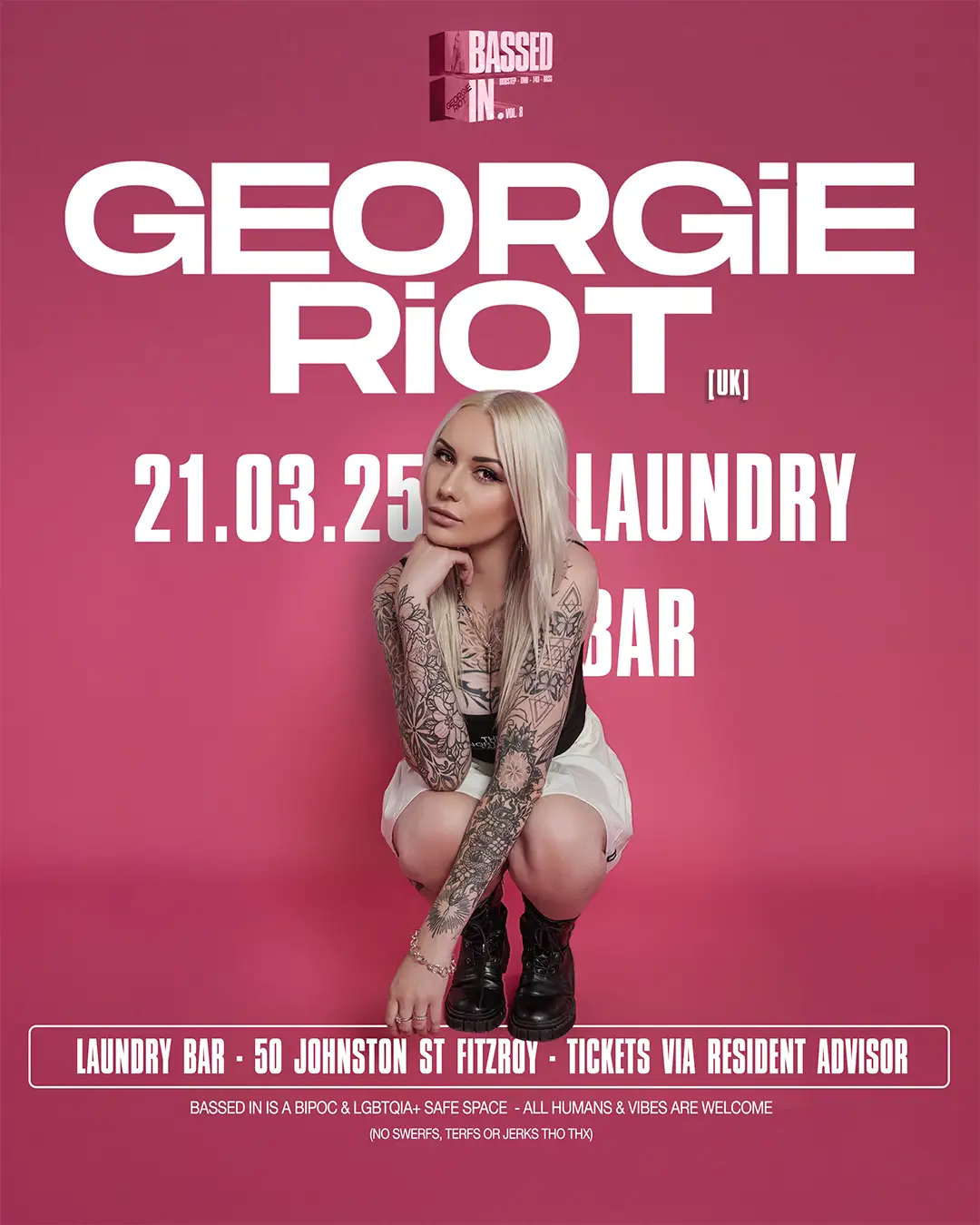 DnB heads of Melbourne it's time. GEORGIE MF'ING RIOT IS HERE. After breaking into the scene on 2020, GEORGIE RIOT quickly gained global notoriety with insane live performances, creative doubles and rapid fire power mixing amongst countless of releases with DnB institutions UKF, DnB All Stars, Atlantic, Tomorrowland, BassRush and many many more. GEORGIE makes her way to Laundry Bar with the Bassed In Crew, after a Sellout Show with Fox Stevenson, this is looking to be the biggest Bassed In to date Limited Early Bird Tickets on sale now starting at $15. Your Support acts will be announced soon, nothing but heaving DnB, Bass and Dubstep for your listening pleasure. Supports: TBA Set Times: TBA Get to know your Support DJ's: Coming Soon BASSED IN IS A BIPOC & LGBTQIA+ SAFE SPACE All humans & VIBES are welcome. Any Anti-Social, homophobic, transphobic, xenophobic behaviour will have you evicted from the venue. (no swerfs, terfs or jerks thx)