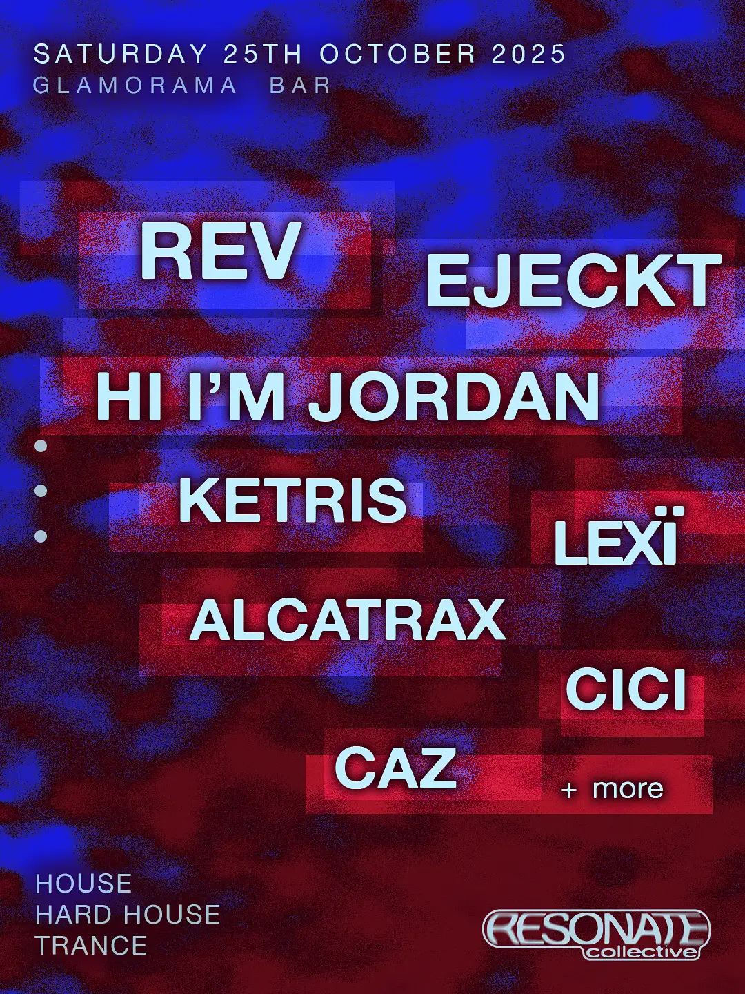 RESONATE DAY PARTY is back - bigger, louder, and ready to raise the energy even higher than our first day party. We're welcoming Rev, Hi I'm Jordan, Lexi, Alcatrax, and CAZ, alongside Resonate staples Ejeckt, Ketris, and CICI - all set to light up the Glamorama courtyard. SATURDAY 25 OCTOBER 3pm till 10pm Glamorama Bar - 393 Brunswick St, Fitzroy Sound. Movement. Community. Come Resonate.