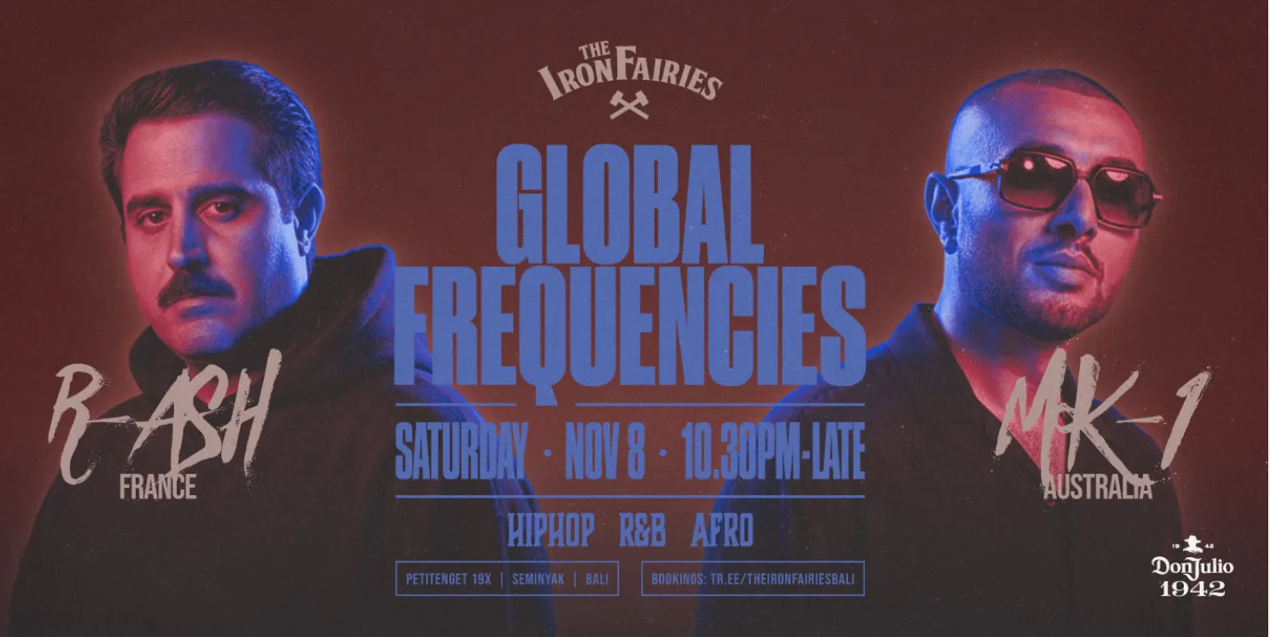 Global Frequencies The next Global Frequencies drop is an international showdown at The Iron Fairies Bali! Featuring two legendary selectors for one magical night. R-Ash | 7x French DMC Champion and scratch virtuoso, bridging Hip-Hop and Electro. Experience the electrifying sound of Paris’ underground. MK-1 | A pillar of Australia’s Hip-Hop scene and legendary collaborator of Afrika Bambaataa. Expect precision, soul, and pure groove from Sydney’s finest. Saturday, 8th November 10.30pm - 4am LADIES FREE ENTRY If you wish to have a table, please make an advance reservation.