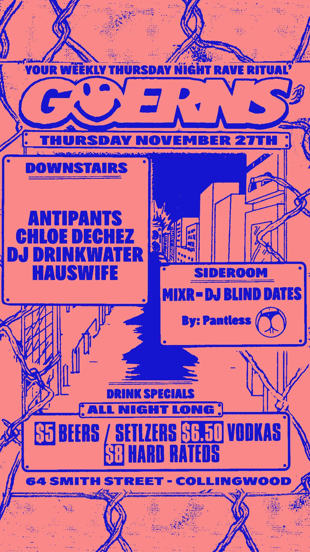 //downstairsANTIPANTSCHLOE DECHEZDJ DRINKWATERHauswife //sideroomMIXR-DJ BLIND DATES