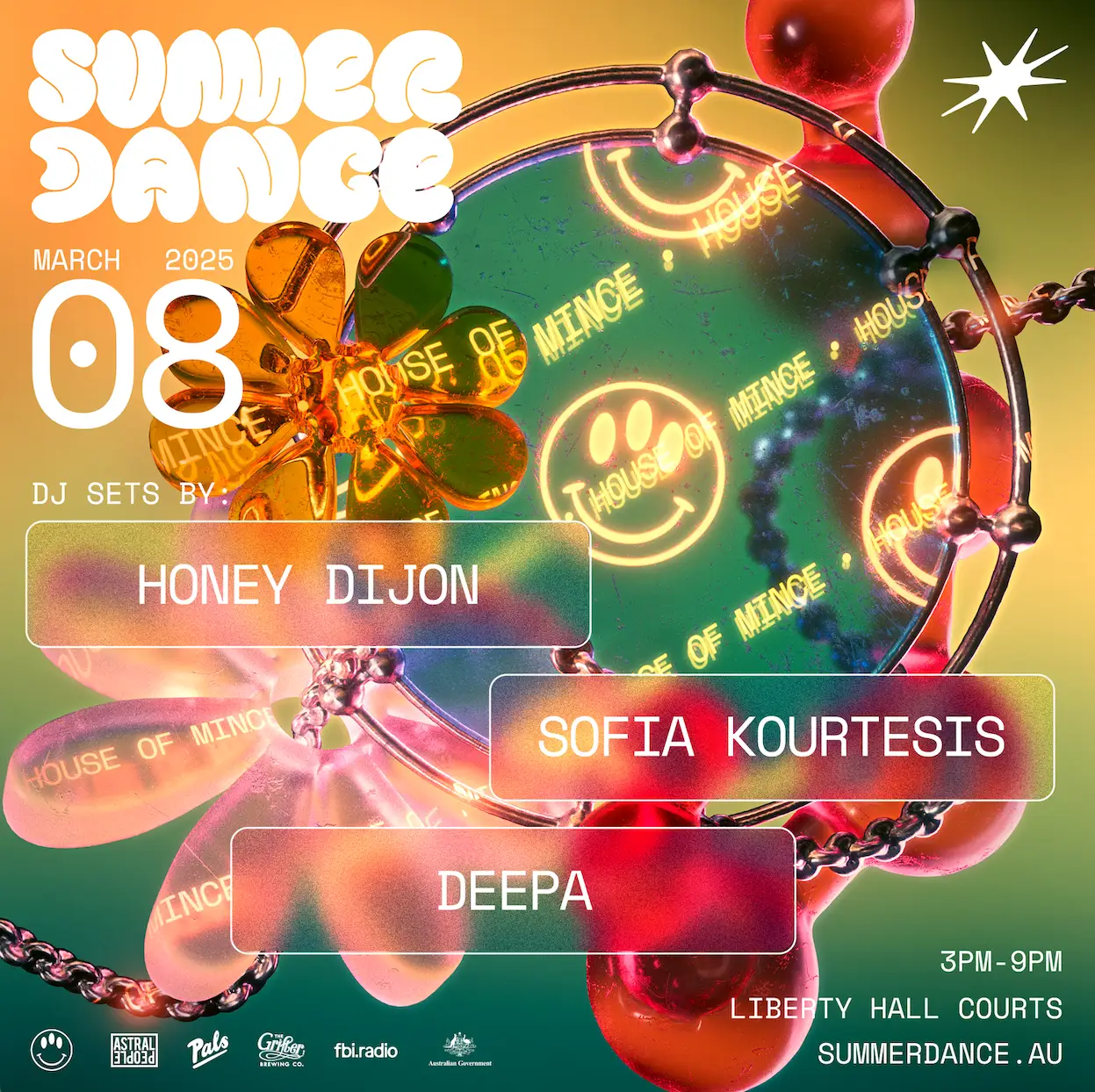 8 March 2025 Summer Dance is taking things back to our roots with a 2018 alumni reunion and a no-holds-barred takeover with House of Mince, the ever-brash, queer party institution that knows exactly how to do things right. Leading the charge is Honey Dijon—a 2018 Summer Dance alum, Chicago-born and now London-based, whose influence runs deep across music, fashion, and culture. From underground clubs to Grammy-winning collaborations with Beyoncé and Madonna, Honey’s sets are a masterclass in groove, blending classic house with a future-facing edge. Joining her is Sofia Kourtesis, the Peruvian-born, Berlin-based producer and DJ whose kaleidoscopic sound has bewitched dancefloors worldwide. With rapturously received EPs and singles, she has solidified herself as one of electronic music’s most exciting new voices. Rounding out the daytime line-up is Deepa, a dancefloor favourite celebrated for her ability to seamlessly connect genres with warmth, energy, and an undeniable flirtatiousness. Expect a sun-drenched hit-out led by DJs who know exactly how to take you there.