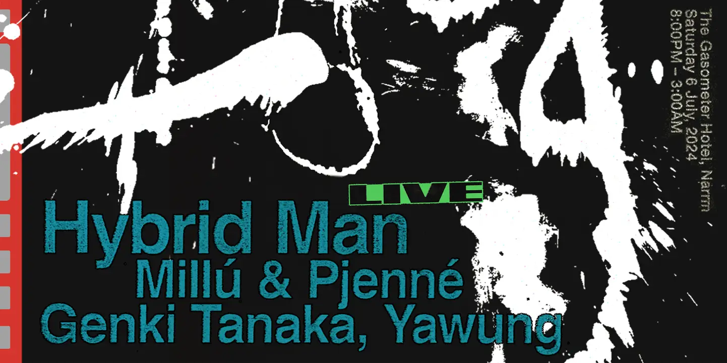 Hybrid Man are hyped to present their last live show for the season before they bunker down into record writing mode. Coming off the back of their debut European tour and releases on Waxo Paradiso and On Rotation, Hybrid Man have trailblazed the contemporary downtempo meets techno movement in Naarm. Combining propulsive sequences with melancholic pads and melodies, Hybrid Man suspend time and fuse ambient soundscapes with IDM, 90’s trance and dubbed-out house, tied together neatly with their masterful technical manoeuvres. Supports from local heavyweights Millú & Pjenné, Yawung and Genki Tanaka. 8pm-3am ~ 484 Smith Street Collingwood Free tickets for mob. Email jasmine@watartists.com No strobe lights will be used. The Gasometer is wheelchair accessible. This event is being held on stolen land. Hybrid Man and the artists would like to acknowledge the traditional custodians of this land, the Wurundjeri people of the Kulin nation and their Elders past, present, and emerging. Always was, always will be, Aboriginal Land.