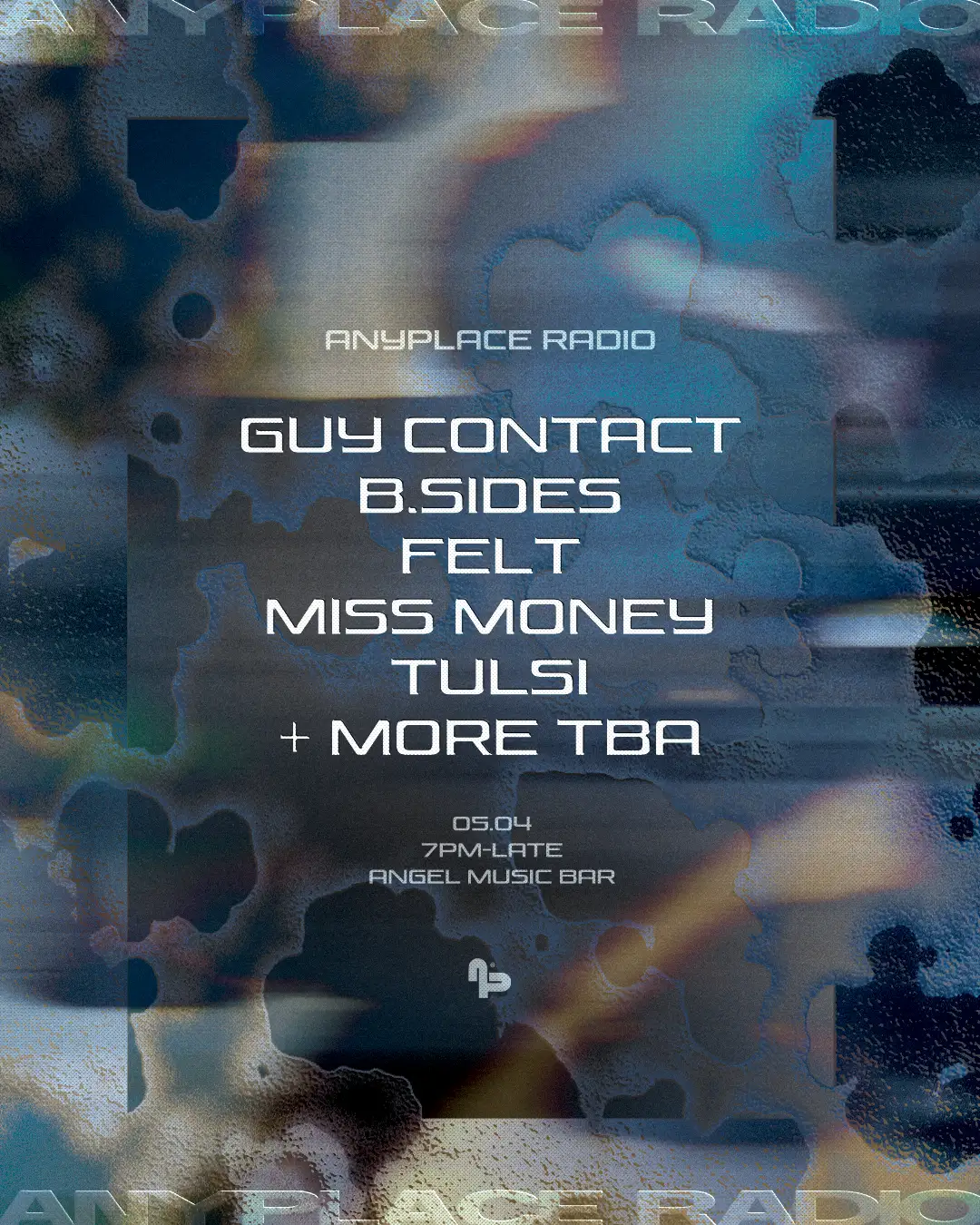 GUY CONTACT • B.SIDES • FELT. • MISS MONEY • TULSI • + MORE TBA 05.04.25 19:00 - late Angel Music Bar Under the glow of Naarm’s ever changing nightlife, we gather - united by rhythm, wrapped in movement, and immersed in sound. Rooted in the underground, driven by community, and fuelled by the pulse of local talent. We invite you to step into a space built on deep grooves and the unspoken bond that only music can create. A night for the heads, the lovers, the seekers. This is about inclusivity, expression, and the shared energy that keeps our scene alive. Come as you are. Be a part of it. Experience Anyplace. We have missed you. Limited pre-sales available via Resident Advisor. Door sales will be available on the night. — — Anyplace recognise this event takes place on Wurundjeri land, we acknowledge the traditional owners and carers of this land and pay respect to all elders past, present and emerging and extend that respect to include all Aboriginal, Torres Strait Island and First Nations people today. FREE ENTRY for First Nations. Please get in contact at info@anyplace.com.au. This event is a safe and inclusive space for anyone and everyone. Anti-social behaviour of any kind will not be tolerated under any circumstances. If you feel at all threatened, unsafe or uncomfortable, please report any unwelcome behaviour to our door staff, security or a DJ directly. Feel free to contact us directly through our Facebook or Instagram page or at info@anyplace.com.au if you have any special requirements or any questions. Love Anyplace x