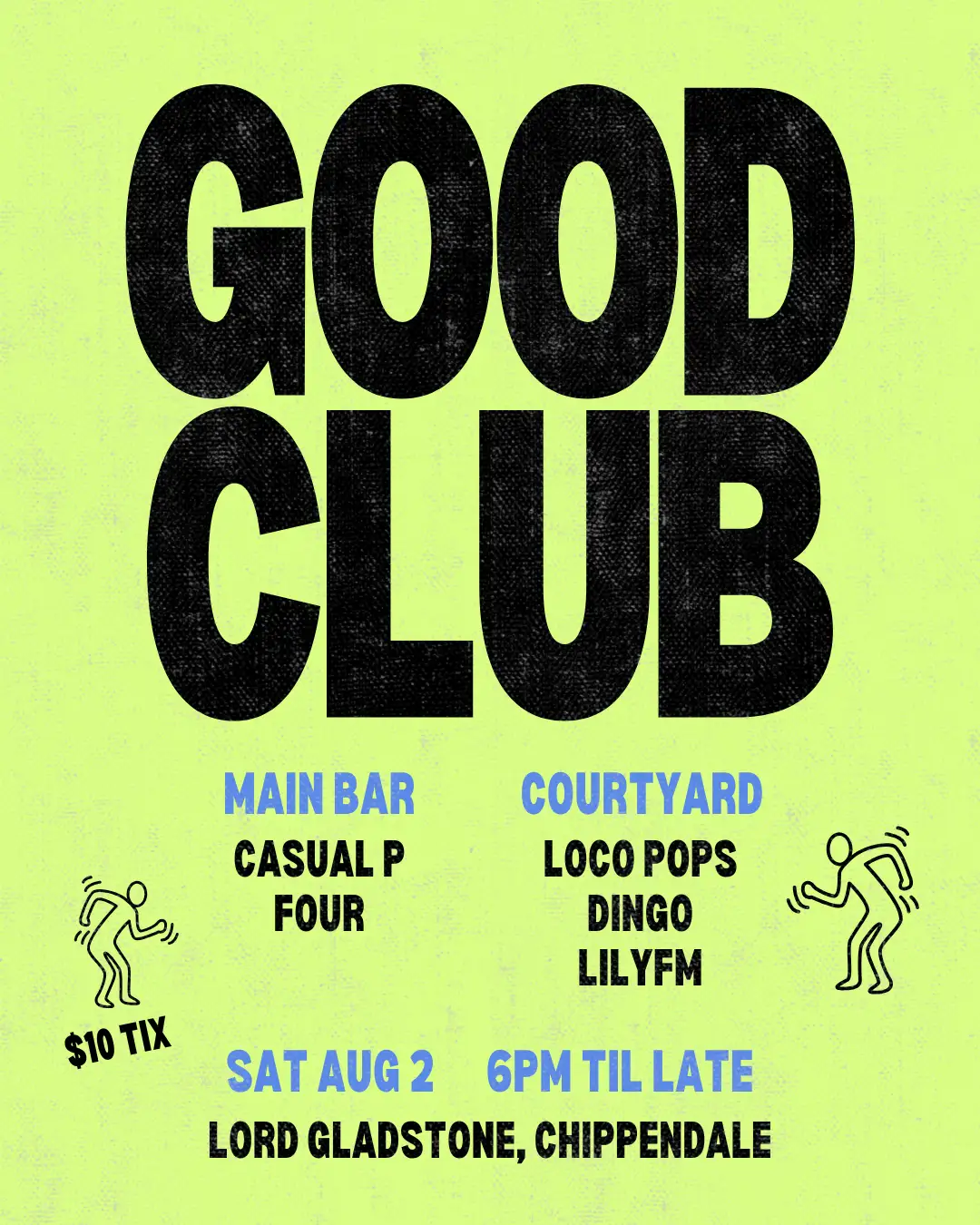 We’re back in our favourite spot - the iconic Lord Gladstone in Chippendale. Local DJs in the courtyard and main room bringing you good vibes all night long. 6pm til LATE | FREE BEFORE 9pm | $10 AFTER All welcome.