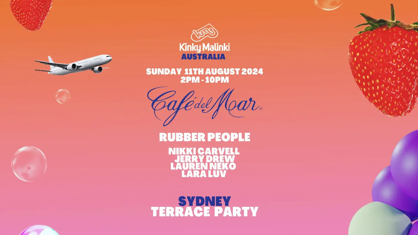 Kinky Malinki - Celebrating their 25th year and bringing a taste of Ibiza to Sydney Get ready to party as the incredible Rubber People take to the stage as headliners for our epic party. As one of the hottest Aussie acts dominating the house music charts across the globe, their sets are a sight you wouldn’t want to miss. More commonly known as Kane Rayner and the mighty Mobin Master, they have been producing addictive Jackin’, funky sounds that are both infectious and addictive at the same time. Mobin is an artist of true international standing, sweeping effortlessly across Australia’s house music landscape for the past three decades and who has spread his musical influence far and wide. An immensely talented DJ and producer, his work has been supported by the likes of Roger Sanchez, Steve Lawler, Danny Tenehlia and Carl Cox. Many will know him for his most celebrated re-recording of the Robin S track ‘Show Me Love’ which spent a record 52 weeks in the Australian charts and remains the longest charting single in ARIA history; with his partner in crime, Kane, they have been producing hit after hit under the Rubber People brand on labels such as Jot Sunday, Souluxe, Dieco Fiasco, Hussle Recordings, and Safari. As a performance duo, they light up the floor with a knowledge of house music that is underpasses both in delivery and in the ability to move fluidly with their audience. Join the party this August as the Rubber People light up Cafe del Mar for Kinky Malinki’s epic night of house hits. Supporting the Rubber People is Kinky Malinki's newest resident DJ - Nikki Carvell, along with the local legends Jerry Drew, Lauren Neko and Lara Luv. Hosting the epic event is Sydney’s iconic Cafe Del Mar. Bringing a taste of Ibiza to Sydney, sip on a cocktail while you dance the night above the picturesque harbour. The venue features a generous sun-soaked terrace perfect for partying it up any time of the year, plus roaming canapes included in your ticket price, a venue-wide bar menu and an extensive drinks list. Grab your tickets now and let us transport you to the white isle!
