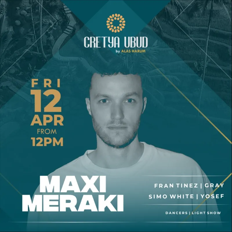 Save the date for an unforgettable night of melodic house enchantment on April 12, 2024, as we bring you the ultimate party experience in the vibrant heart of Ubud. Line Up: - Maxi Meraki - Fran Tinez - Gray - Simo White - Yosef Prepare to be dazzled as our mesmerizing dancers and fiery fireshow ignite the dance floor with their captivating performances. Ticket Options: - Early Bird: Rp. 200,000 - Presale: Rp. 225,000 - VIP 1: Rp. 7,500,000 - VIP 2: Rp. 5,000,000 - VIP 3: Rp. 3,500,000 - VVIP: Rp. 10,000,000 Limited tickets available, secure yours now!