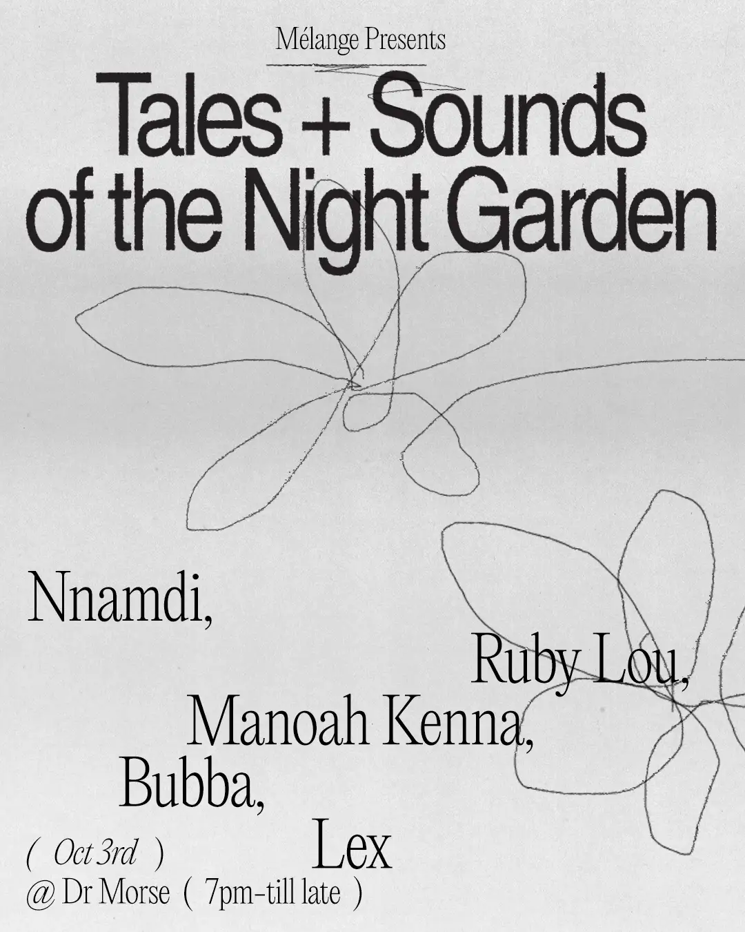 Mélange returns as spring beckons for a night of high-quality music in one of our favourite venues in Melbourne. Some of the best selectors in the city come together to celebrate our return since our sell-out Music and Arts Festival at the Gasometer. Mélange is a platform instrument for artists in all fields of art to connect and socialise in a non-professional environment. We want creatives to feel welcome and wanted in environments which allow them to create new connections and foster old ones. Mélange acknowledges the Traditional Owners of this land, the Wurundjeri People of the Kulin Nation in which we operate. The Wurundjeri People are the people of the wurun, the river white gum, who have been custodians of this land for thousands of years. We pay our respects to all Aboriginal and Torres Strait Islander Elders - past, present, and emerging. Any First Nation people willing to attend, please get in contact with info@melange.art