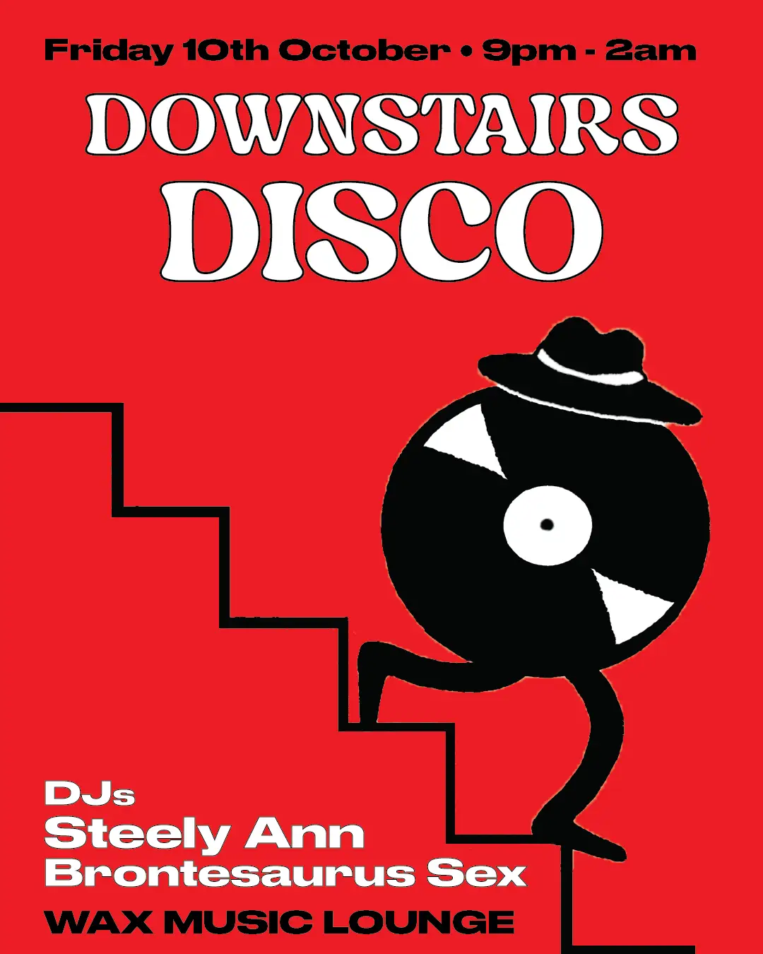 Get ready to groove at Downstairs Disco, a new monthly dance floor journey! Curated by STEELY ANN, its third instalment features special guest BRONTESAURUS SEX! Expect deep cuts, classic vibes, and all things disco and house. Get down to WAX this Friday to get down!