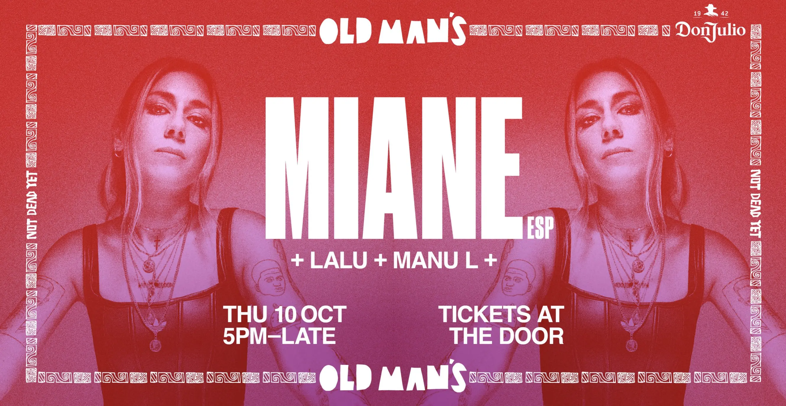 We’re excited to have Miane join us at Old Man’s! Miane has made remarkable strides in the electronic music scene, and her career has flourished in recent years. Now based in Ibiza, she has emerged as a key player in the global electronic music community. Kicking off the night will be our warm-up acts, Lalu and Dan Cook. Tickets will be available at the door, so we can’t wait to see you all on the dance floor!