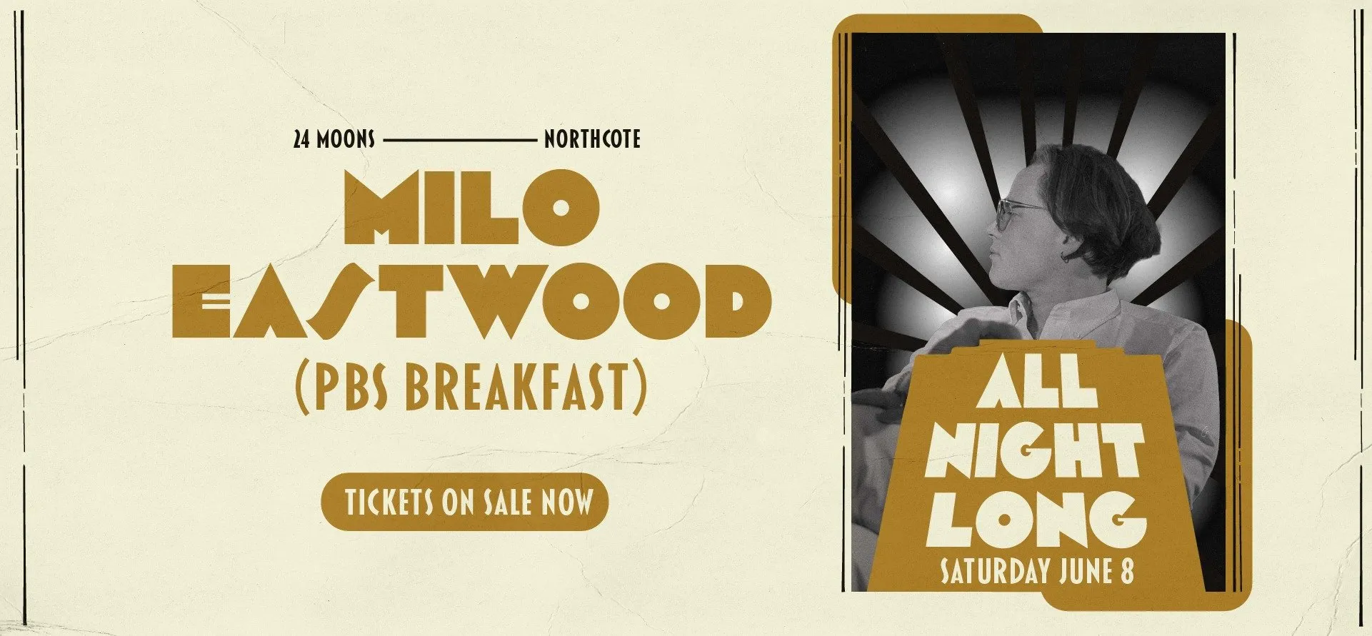 Milo Eastwood (From PBS FM's The Breakfast Spread) Returns to 24 Moons for another All Night Long Set. Coming off the back of a huge summer including sets at Meredith Music Festival & back to back sell-out shows at The Fairfield Amphitheatre & The Night Cat, Milo Eastwood is excited to return to 24 Moons to take dancers on an uplifting and winding voyage through his expansive collection. Expect anything and everything, keep it locked for The Midnight Spread.