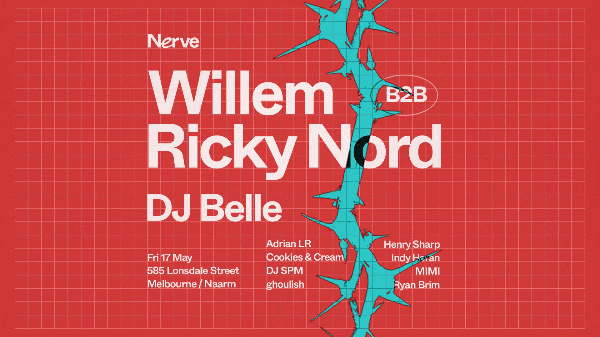 Willem B2B Ricky Nord DJ Belle Adrian LR Cookies & Cream Ghoulish Henry Sharp Indy Horan Mimi Ryan Brim Built on electronic soundscapes , Nerve is a place of gathering, where dance and music is a precious commodity.