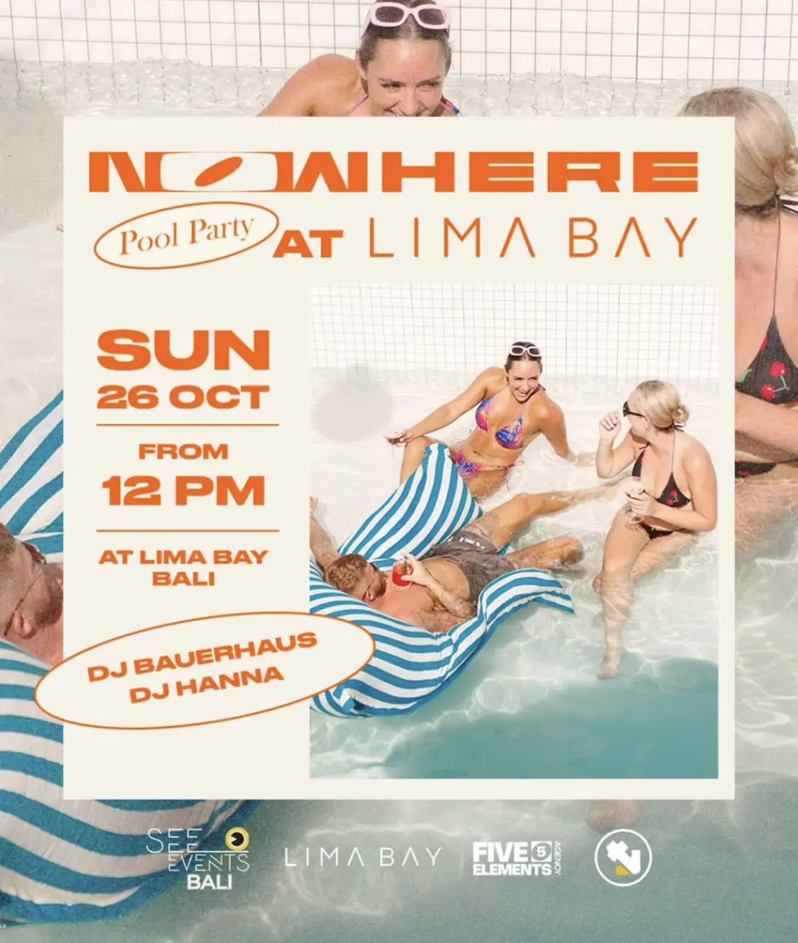 Sundays are for bad ideas in good company 🤪 We’re taking over @limabay.bali for a Nowhere Pool Party! Cocktails, chaos, and a little bit of chlorine never hurt anybody. Sunday 26 Oct | From 12PM Lima Bay Bali Music by DJ Bauerhaus & DJ Hanna Come get wet, wild, and slightly unhinged 🧡