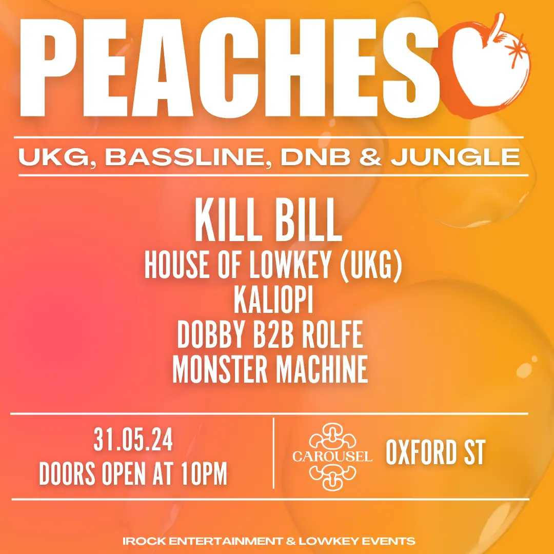 Sydney's home of UKG / BASSLINE / DNB & JUNGLE Held at Carousel - A cabaret inspired 70’s discotheque in the centre of Sydney's heart - Oxford Street. The refurbishment has Carousel boasting a state-of-the-art sound system – a FunktionOne, for those in the know – consisting of no less than 33 speakers littered throughout the venue. While sound is the main pull that the venue has on blast, the lighting system is also something to rave about – they have lights imported from Amsterdam that are the only ones of their kind in Australia. Come shake your Peaches at Sydney's juiciest nightlife experience