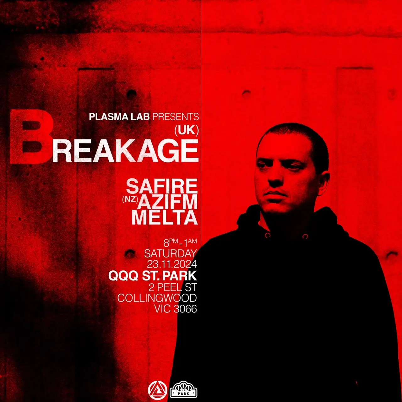 James Boyle, better known as Breakage... the master of deep bubbling sub bass is headed to melbourne to play on one of the countries best sounding rooms QQQ St. park for the first times in a decade. also joining us is some of Australia and NZ finest talent in Safire and Azifm Just 20 early birds available, do not miss this one! more info TBA