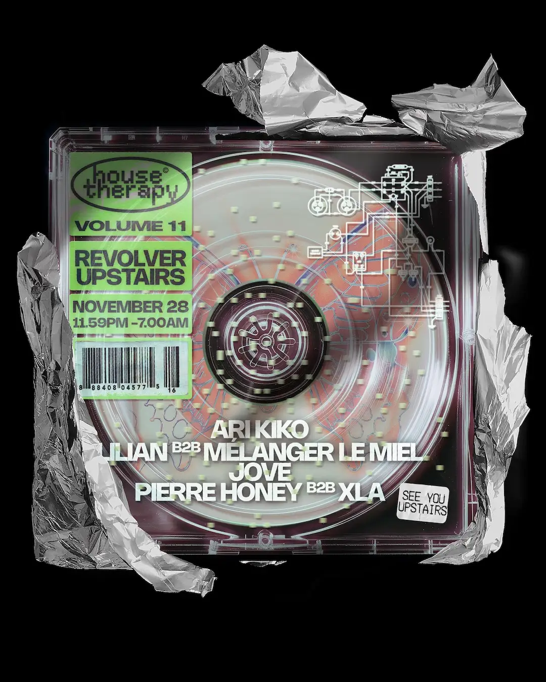 House Therapy Vol. 11 — Revolver Upstairs Friday 28th November, 11:59PM - 07:00AM, Revolver Upstairs ————————————————————— House Therapy; the kind of therapy your mind, body & soul actually needs. Launched this year with one mission: to bring house music back to Melbourne/Naarm. The man behind the mission? @lilianchabannes. With heart, heat, and a whole lot of groove game, Lilian's sharp ear for timing and talent ensures every line-up is curated with precision and one goal in mind: create serious energy on the dance floor. ————————————————————— LINE-UP: ARI KIKO LILIAN B2B MÉLANGER LE MIEL JOVE PIERRE HONEY B2B XLA Plus Revolver Fridays in the Cage I Rise & Shine with Sunshine from 7am Saturday morning. ————————————————————— Revolver Upstairs respectfully acknowledges the Boon Wurrung People of the Kulin Nation, their elders, past and present, who are the Traditional custodians of he land never ceded. We also acknowledge the Traditional Owners of lands and waters across Australia, their elders, ancestors, and recognise their continuing connection to, and aspirations for Country. Revolver Upstairs prides itself on being an inclusive space. Please visit our website for more info.