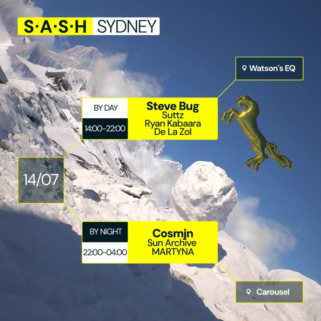 ★ S.A.S.H By Day & Night ★ Steve Bug ★ Cosmjn ★ Sunday July 14th ★ ------------------------------------------------------------------------------------------ Second week into July and we’ve got another delectable delight for you all. Watson’s EQ & Carousel are in their cold snap, so we’ve doubled down on our showcases for you. The German Maestro Steve Bug drops into Watson’s EQ after an evening of fixing sinks, ready to take the courtyard by storm. His tasteful blends have seen him all over the world, and his productions push him forward as one of the leaders within the industry. Groove entrepreneur Suttz decides to come and beat the frost and welcome in the moonlight with an evening session at EQ. Keeping it Kool, Ryan Kabaara showcases his deep collection whilst he bathes in what’s left of the sunlight. The courtyard welcomes newcomer De La Zol with deep, lavish, & zolid tunes to thaw out the dancefloor. As cool as he is, we head over to Carousel & get cosy with Cosmjn. The Romanian has carved out a name for himself as he’s destroyed dancefloors across the globe and topped charts through his productions. With standout appearances at Sunwaves and all across Europe, Cosmjn is most definitely the man. Sun Archive joins him on the bill for direct support, our very own superhuman export has done bits for the scene throughout the years and will warm things up in style. MARTYNA steps into the booth for closing duties, her innate ability to produce groove is sure to keep things rolling deep into the morning.