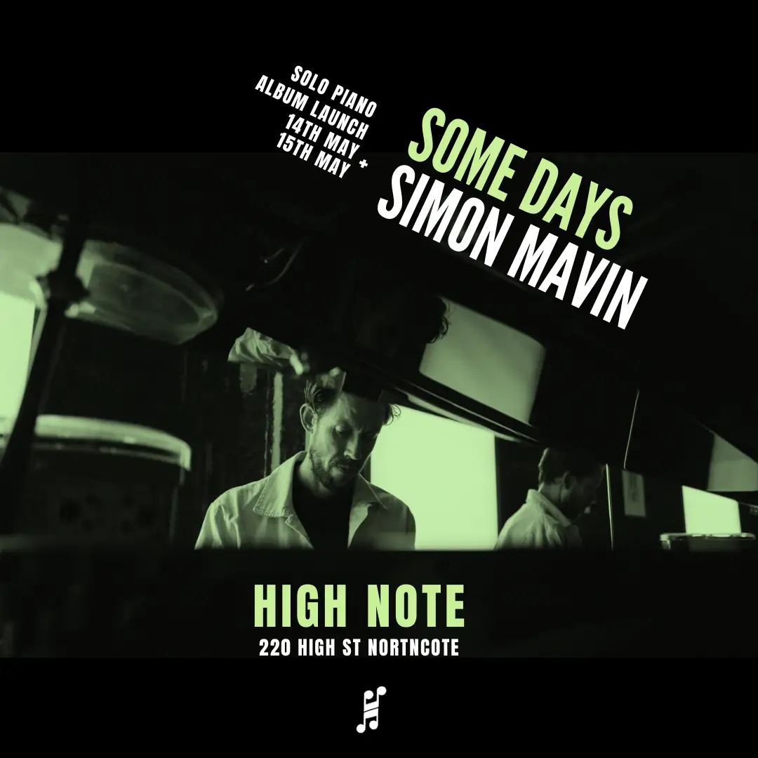 To celebrate the release of Simon Mavin's solo piano record 'Some Days', join us for 2x micro concerts at High Note on the 14th and 15th of May. Extremely limited spots available to lounge in the sound of these intimate performances - never to be repeated shows. $35 $50 record $85 record + show bundle Some Days is Simon Mavin’s first solo piano release. It documents seven individual moments in time, spanning roughly over a five year period. In between contributing his talents primarily as a member of Hiatus Kaiyote, The Sweet Enoughs and The Putbacks, Simon sat down at the piano or a keyboard and recorded whatever came to mind, usually settling on the first take. The nature of the piano as a dynamic instrument means that nothing can ever be played exactly the same way twice. This event will occur on the unceded, sovereign lands of the Wurundjeri Woi Wurrung people of the Kulin Nation. Always Was, Always Will Be.