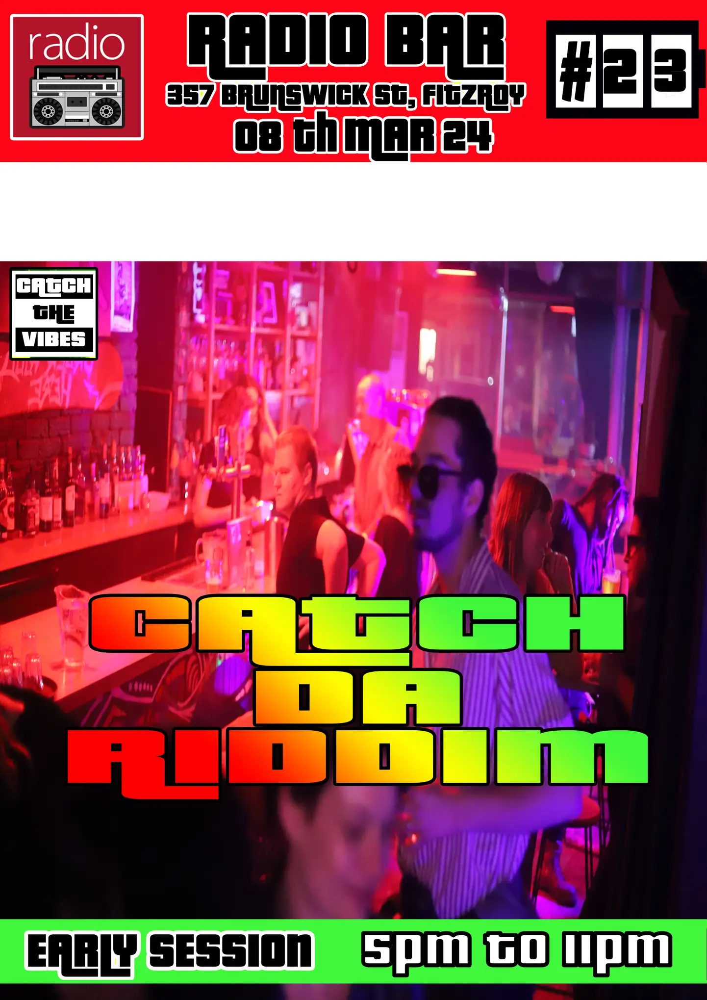 Melbourne's premiere monthly Dancehall hangout at Radio Bar, 357 Brunswick St Fitzroy. This is the perfect hangout spot for Friday after work drinks. Come hang out before dinner, or have a dance after. Featuring Melbourne's finest Dancehall selector.