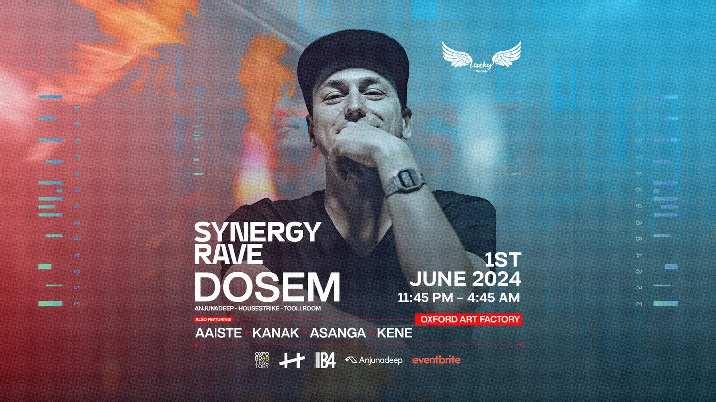 DOSEM returns to Sydney for an exclusive show, revered for a desire and passion to explore the deeper shades of house and techno. Proudly presenting one the dream acts from Progressive, Melodic world for third edition of our Synergy Rave - DOSEM! Sydney Exclusive Show ! DOSEM Revered for a desire and passion to explore the deeper shades of house and techno, Dosem’s career as an artist has been on a constant upward trajectory. Fusing together over a decade of mastering his craft in the studio, along with an unmatched touring pedigree across some of the world’s leading clubbing brands, his fusion of deep textured sounds and driving percussion grooves have driven him to become one of the most influential Spanish artists in the scene. Honing his craft since 2008 with a string of releases on imprints such as Christian Smith’s Tronic, Hernan Cattaneo’s Sudbeat, Slam’s Soma Records and John Digweed’s seminal Bedrock, Dosem’s journey through the underground landscape has been catapulted by a thirst for delivering forward thinking groove materials of the highest caliber. With his debut album ‘Parallel’ on Sino bursting him onto the scene showcasing his rich fusion of atmospheric Techno, his musical pallet has gone from strength to strength, with following albums ‘Origin’ on Tronic and Vicious Magazine’s ‘Album Of The Year’ ‘City Cuts’ on Suara unveiling his diverse approach to building expertly designed dancefloor cuts, while also leading to the coveted spot as one of Beatport’s Top 5 techno artists in 2014. With a versatile sound which is as dynamic as it is forward thinking and with stellar remix duties on Hot Since 82’s ‘Planes & Trains’, which reached #1 on Beatport’s Techno chart, to working his deep house magic on Umek & Mike Vale’s ‘All I Want’, which hit #1 in Beatport’s deep house chart, his ability to cross between different styles of house & techno has led him to work with some of the industries most respected talents. A turning point has occurred in recent years thanks to its releases on the renowned Anjunadeep label, which consolidated him as one of the Melodic Techno most demanded profiles in the international club and festival circuit. Releases such as ‘All Locations’, ‘Stay True’ and ‘Extraction’ occupy the first positions of the world charts alongside epic Remixes of ‘1998’ by Binary Finary, ‘Air For Life’ by Above & Beyond & Andy Moor, ‘Hyperlude ‘By Yotto and ‘Parfume ‘by Eli & Fur, and epic performances at Anjunadeep Explorations and Open Air in London. In 2020, Dosem presents his fourth studio album ‘Dream Decoder’, a considered mix of ambient atmospheres and melodic techno preceded by the singles ‘Tower’, ‘Megacities’ and ‘Eternal Summer’. With DJ support from the the likes of Tale Of Us, Hot Since 82, Maceo Plex, Camelphat, Gorgon City, Nora En Pure and Solomun and tastemaker stations like BBC Radio 1, Triple J, and KCRW, Dosem’s newest LP is set to solidify his reputation as one of Spain’s premier dance producers. Having gained strong support from the undergrounds elite and many of its discerning fans, what lies ahead is truly a period of exciting potential. Fixed on exploring new facets as a music producer, Dosem is also ambitiously stretching his sound into new avenues. Pushing his musical boundaries on all fronts, the key to his passion lies within his eagerness to create soundscapes that possess a unique charm, whilst all the while being raw timeless electronic experiences. From the dark bass riddled sounds of underground techno to melodic house infused tech, the sound structure of Dosem’s musical palette is vast, which in turn complements his knowledge and familiarity of a genre and scene he has passionately dedicated his life to. ------------------------------ What to Expect • Enhanced Sound System • Oxford Art Factory Main Room • Co2 & Smoke • Strobe/Light Show • Themed Decorations (Synergy Rave) • 600 Ravers • Progressive/Melodic ★ LINEUP ★ Main Room (Prog/Melodic Stage) DOSEM (Anjunadeep, Housestrike, Toolroom) Aaiste Kanak KenE Asanga ------------------------------ Follow us on Instagram & see what we are all about! Let's get lucky! ———————————————————— This event will proceed based on government advice in place at the time of the event. Lucky Present’s priority is to meet the highest level of health and safety protocols throughout the event. COVID-19 safety plans have been prepared and we are in communication with relevant authorities. Should the event be unable to proceed on the original advertised date, it will be postponed to a later date. Refunds will be available for those who are unable to attend the replacement date ———————————————————— There are no refunds for this event. All sales are final.