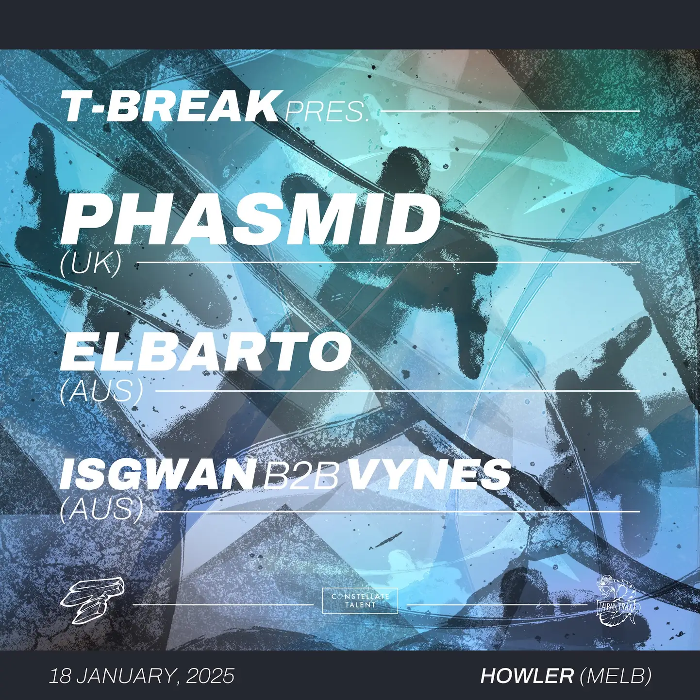 T-Break presents Taipan Trax label founder ‘Phasmid’ (UK) for a night of Breaks, UKG and general ravey business. T-Break are taking over the Howler theatre to present Phasmid on January 18th. Known for his heavy hitting bass driven style, the Leeds-based DJ and producer is making his debut across the pond. With a sound that blends breakbeat, electro, and trance, Phasmid is not to be slept on. Fresh off a creative break, he’s back with new bangers, including a searing remix for Morelia’s latest EP and his upcoming ‘Primordial’ EP dropping in March on Taipan Trax. Expect a night filled with driving rhythms and intricate soundscapes that’ll keep you moving. Don’t miss out on the chance to catch Phasmid live as he takes the stage! Grab your crew and get ready for a big one.